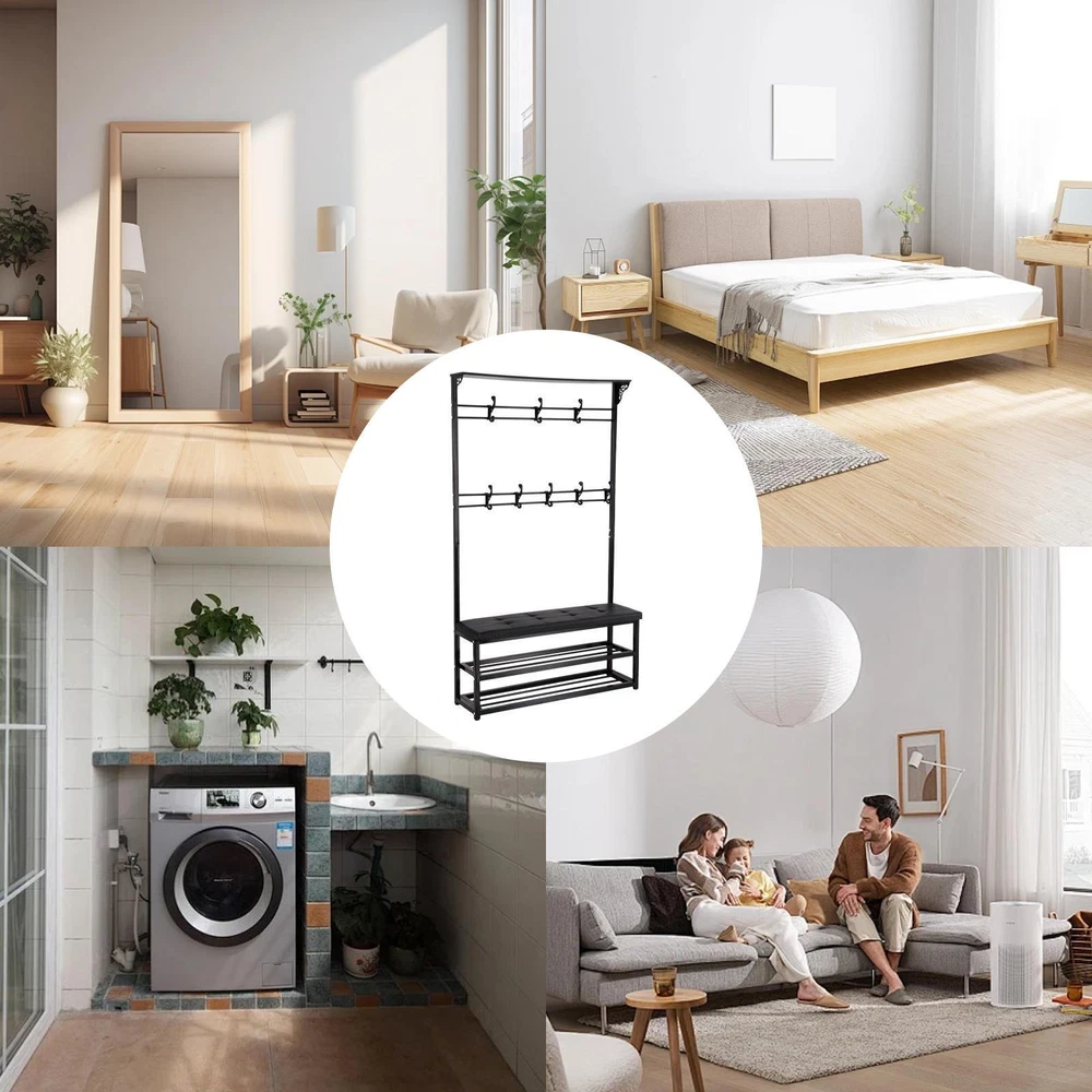 Store category Sign Up Now ! You may also like Product Description Bullet Points: Multifunctional Elegance: Introducing the shoe coat rack with a multifunctional 4-in-1 design brings promoted functionality and organization to your home. It integrates a shoe-changing bench, clothes hanger, shoe cabinet, and storage rack, making it the ideal space-saving and efficient way to manage your home clutter. Long-term Use: Our shoe coat rack combines the functionality of sturdy iron material and exquisite baking paint technology with a stylish look. Made of high-quality iron material, it ensures excellent durability and long-term use. Stable Organization Companion: With a strong load-bearing capacity of up to 100kg and a stable metal non-slip foot pad, this shoe coat rack provides a stable organization companion for your wardrobe, ensuring safe and secure storage of your garments and shoes Space-Saving Efficiency: With a double-row hook design and a flexible and adjustable hook system, this shoe coat rack makes it easy to hold jackets, bags, and other daily items. Plus, the detachable and movable hooks allow you to meet different storage needs and keep your space organized efficiently Comfortable for Shoe-Changing: The sturdily built shoe coat rack assures a comfortable sitting experience that adds a spark to every entry and exit. The stable bench further promotes your shoe-changing delight The perfect combination of functionality and style! Our entryway hall tree integrates a shoe-changing bench, clothes hanger, shoe cabinet, and storage rack. The detachable and movable hooks ensure safe and long-term use, making every entry and exit of your house a kind of enjoyment. Specifications: Color: Black Length: about 80cm/31.5 inches Product size: about 172x80x30cm/67.72x31.5x11.81 inches Packaging size: about 90x34x17cm/35.43x13.39x6.69 inches Packaging weight: about 8.5kg/18.7lbs Maximum load: about 100kg/220.5lbs Packing List: Shelves*1 set Cushion*1 Screw pack*1 bag Connectors*1 bag Hooks*8 Wooden board*1 Instruction manual*1 Notes: 1. Due to different lighting and screen settings, the item color may be slightly different from the picture. 2. Due to different manual measurements, please allow a 1-2cm difference in size. Payment Delivery details Terms of sales About us Feedback & DSRs Payment Before you palce an order, please kindly make sure that you have a paypal account. We accept PAYPAL payment only. Payment should be completed within 2 days after auction closed, or unpaid dispute will be filed for an closing auction. An unpaid case will be filled after 4 days. Delivery details We ship to your eBay address. Each package will be shipped to US by UPS Regular Parcel with tracking number. Please check your shipping address carefully before checkout, it can't be changed if order completed. All items will be shipped within 1-2 business day upon receipt of payment.Orders placed on weekend will be shipped within 3 days. If you do not receive your item in 7-10 business days.please contact us immediately for further assistance. We will be responsible for any damages or losses incurred in the shipping process. About us We maintain high standards of excellence FIVE STAR and strive for 100% customer satisfaction! Positive Feedback is very important to us. We hope that you contact us immediately Before you give us neutral or negative feedback, so that we can satisfactorily address your concerns. We promise to offer the lowest price and high quality produce. Our working time: From Monday to Friday(9:30 am to 18:00pm), we don't working on holidays ,hope you can understand and know that , thank you. Please always talk to us via ebay Message. We appreciate your business and look forward to growing our e-Bay sales with satisfied customers. Feedback Contact us If you have any questions, please feel free to contact with us by ebay Message during our business hours ( 9:30a.m. to 5:30 p.m.), or email us through eBay, we will try our best to help you to resolve it. For any presale or after-sale questions,please do feel free to email us! Due to the time difference, each email will be replied within 1 working day,and weekend will be delayed a bit. Feedback