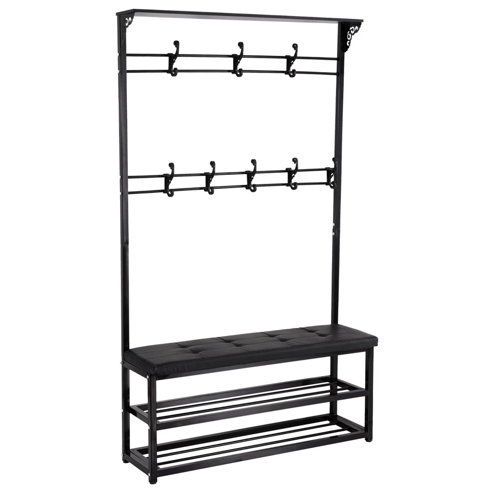 Entryway Bench With Coat Rack Hall Tree Shoe Storage Shelves With 8 Hook