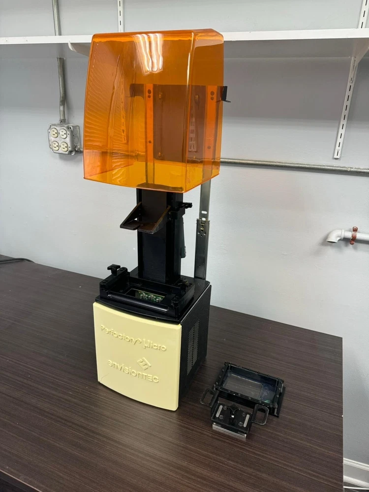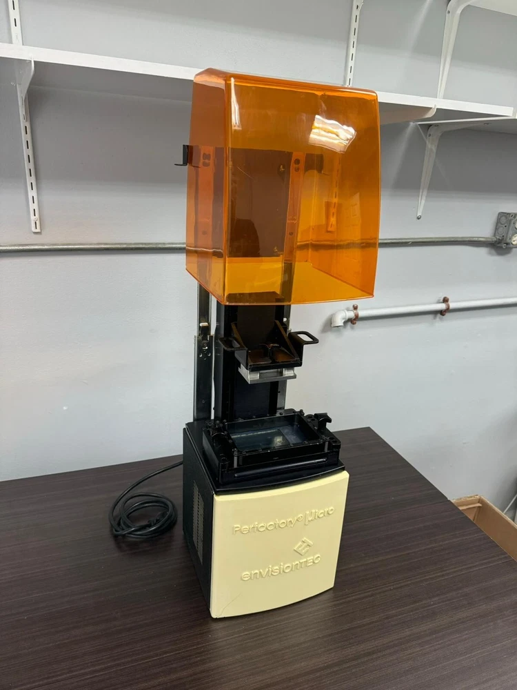 For sale is an envisiontec micro 3d printer, used for fine jewelry. We originally bought it in 2015 and used it until 2019 when we upgraded to a larger machine to meet our needs. The machine has great resolution as we are a manufacturer of highly detailed jewelry. The machine was working perfectly mechanically though we no longer have the magics software. Overall we were very happy with the machine and the original cost was over $18k! The buyer would be responsible to get the software from envisiontec (their website offers this under support) or at the very least to figure it for the parts for your existing machine. The machine was working the last time we used it but it is sold as is. It has been stored in the same room with our other daily use printers in a temperature controlled environment. There is a flash cure box included for free, which is not flashing but it is receiving power. Local pickup in Chicago or shipping is available