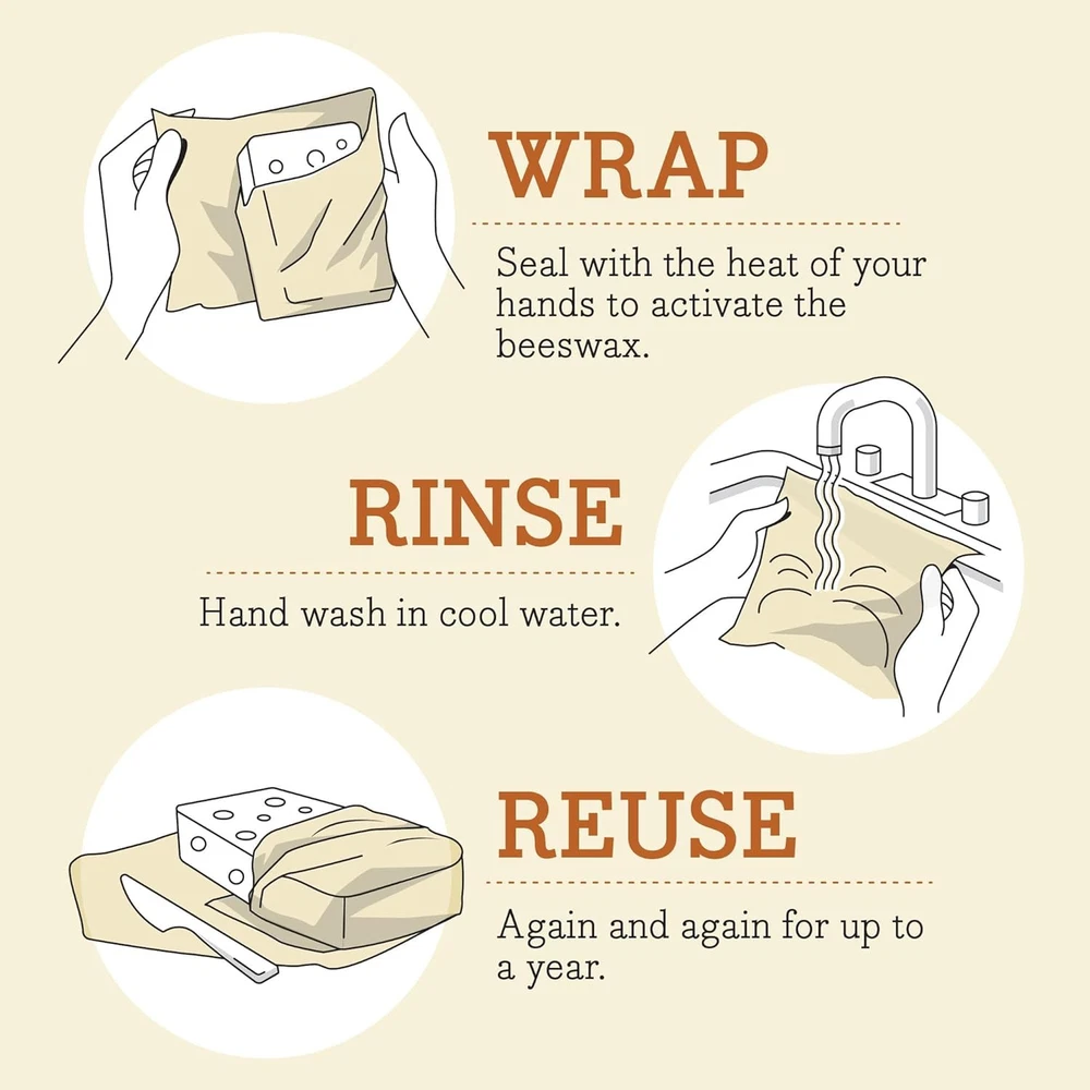 Bee's Wrap Reusable Beeswax Food Wraps Made in The USA, Eco Honeycomb Product Details Product Dimensions: 7.5 x 4.3 x 0.15 inches Item Weight: 1.92 ounces Manufacturer: Bee's Wrap Country of Origin: USA Item model number: 1533003 Is Discontinued By Manufacturer: No ECO FRIENDLY REUSABLE FOOD WRAPS are here to eliminate single-use plastic wrap from your kitchen. The green alternative to plastic food storage, our beeswax food wraps keep your food fresh without plastics, unlike traditional food storage containers or single use sandwich bags. A great alternative to bread bags. ALL NATURAL wraps are made in the USA and contain organic cotton, beeswax, organic plant oil, and tree resin - free from toxins and unnecessary chemicals. Say goodbye to plastic wrap - our beeswax wraps are durable, reusable, and washable, making them a sustainable kitchen storage essential and the ideal alternative to plastic wrap. VARIETY PACK OF THREE WRAPS in assorted sizes for all of your food storage needs. Use our small wrap (7" x 8") for half a lemon, onion or avocado; the medium wrap (10" x 11") for cheeses, a sandwich, or snack; and the large wrap (13" x 14") for covering a salad bowl or pie. Say goodbye to plastic wrap and hello to sustainability. Great for back to school and school lunches. TO USE warm the wraps with your hands to make them pliable and shapeable to your specific food storage needs. The wrap will maintain shape when it cools, creating a secure seal and keeping food fresh. To clean, hand wash the beeswax wrap with cool water and mild soap, then air dry. REUSE YOUR WRAPS for up to a year with proper care. Bee's Wrap can be composted or used as a fire starter at the end of its life, making it a truly eco-friendly food storage solution. With a variety of sizes and patterns, our wraps are the perfect housewarming gift, gift for teachers, gifts for mom, or hostess gifts.
