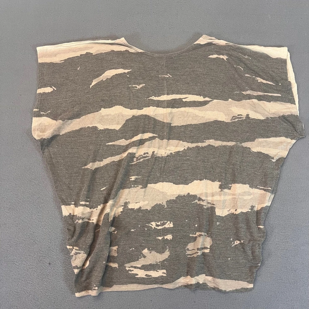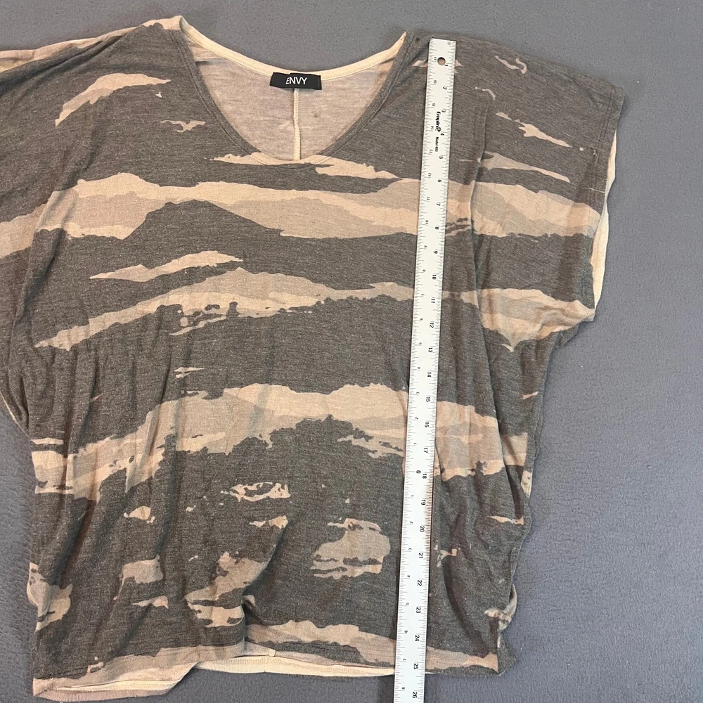 This Envy Women's Sz Med Camo Short Sleeve Shirt is a stylish and versatile addition to any casual wardrobe. Made from a comfortable blend of polyester and rayon, this shirt features a trendy batwing/boxy fit with a classic round neck and short sleeves. The gray camouflage pattern adds a fashionable touch to this basic yet colorful top, perfect for all seasons including summer, fall, and spring. Ideal for everyday wear, this shirt from Envy is a must-have for women who appreciate a comfortable and trendy style.