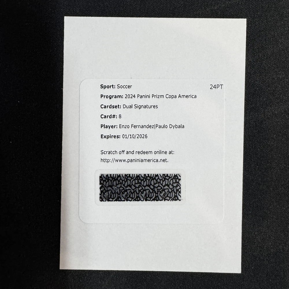 Enzo Fernandezl Paulo Dybala2024 Panini Prizm Copa Dual Signatures Auto -vi