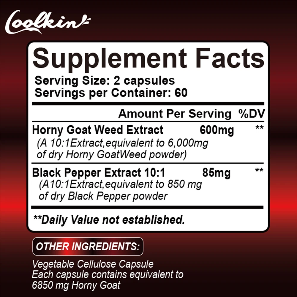 Effects: Testosterone Booster, Energy & Endurance Ingredients: Horny Goat Weed, Black Pepper Directions: Take 2 capsules daily after meals. Shipping: Ships within 48 hours on working days. Shelf life: 2 years Description: Epimedium, also known as horny goat weed, is a Herb plant that,Traditionally used to support male hormones, helping to increase energy, endurance and alertness. And combined with black pepper, it is easier to absorb. Improves Endurance - Epimedium improves physical performance, helping you stay strong longer, and also supports healthy blood flow. TRUSTED FORMULA - Our Epimedium capsules are formulated and manufactured under strict GMP guidelines; our Epimedium extracts are third-party tested to ensure the quality and purity of each batch. Document