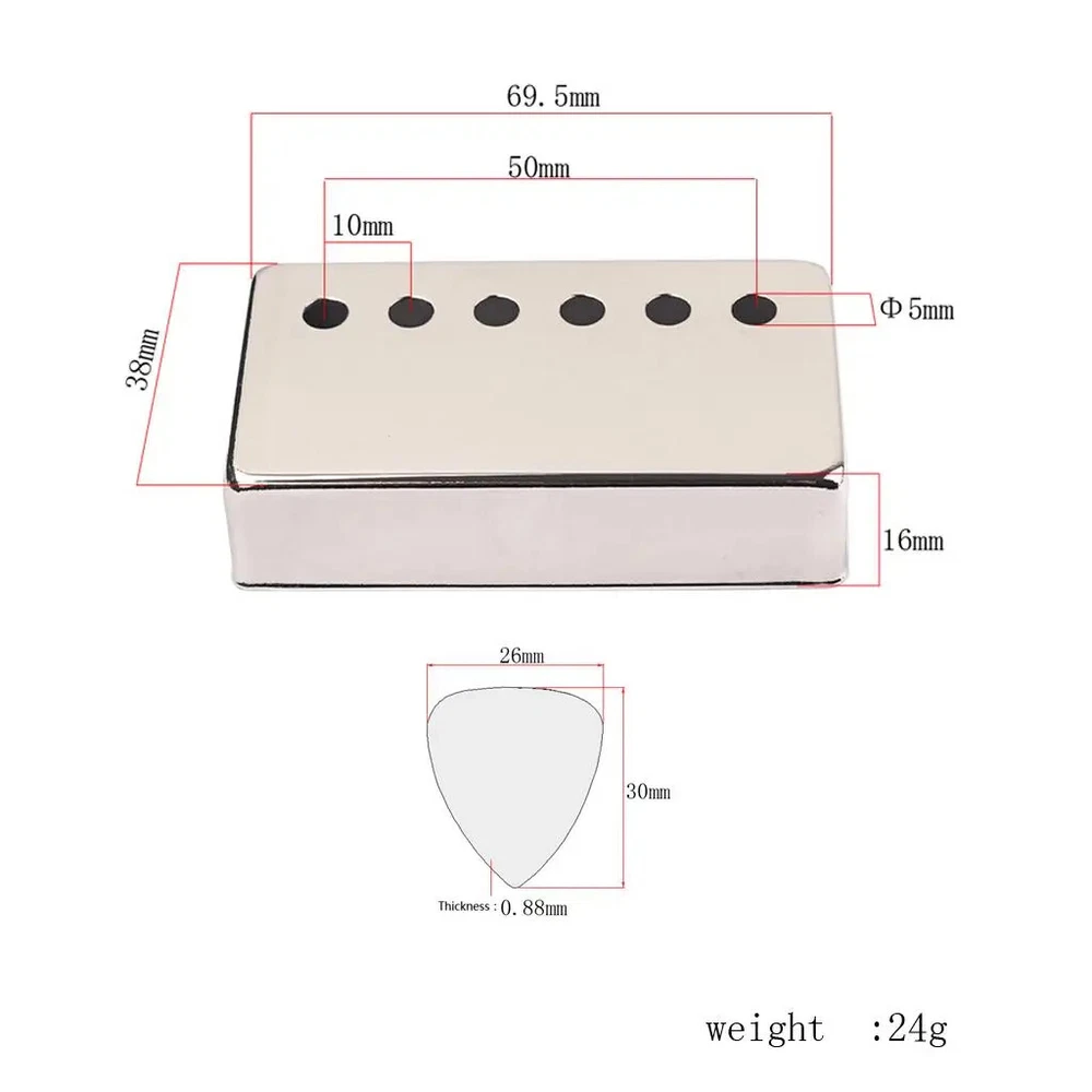 Description: 50mm pole spacing 16mm height humbucker pickup covers plated for SG Eiphone electric guitar High quality and testing is fine Easy to install and convenient to use Material: Copper Size Chart: Approx . 69.5 x 16mm/2.74 x 1.5 x 0.63inch Mounting Hole Spacing: Approx. 10 mm/0.40 inch Package Includes: Guitar Humbucker Pickup Cover Note: Due to the difference between different monitors, the picture may not reflect the actual color of the item. Due to manual measurement, there may -2mm error in size.