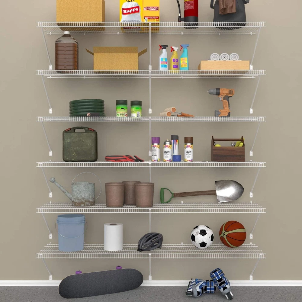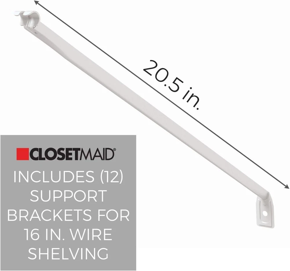 Item Weight: 3 pounds Department: Adults Shape: Rectangle Color: White Set Includes: Shelf Brackets, brackets, anchors, #8 pins Item Depth: 20.5 Inches Style: Contemporary/Modern Suitable For: Shelving Features: Heavy Duty Global Trade Identification Number: 00075381017763 gtin13: Does Not Apply Room: Home Office/Study, Living Room, Entryway Unit Count: 12.0 Count Maximum Weight per Shelf: Unknown Required Tools: No Tools Required Packaging: Flat Pack Wood Tone: Unknown Number of Items in Set: 12 Brand: Unbranded Maximum Weight Capacity: Unknown Personalized: No Mounting: Wall Mounted, Wall Mount Item Dimensions L X W X H: 20.5 X 1 X 2 Inches Type: Shelf Brackets Number of Shelves: 1 Mounting Type: Wall Mount Item Width: Wire Shelving Support Brackets Additional Parts Required: No Distance from Floor to Bottom: Unknown Item Length: Wire Shelving Support Brackets Assembly Required: No Item Height: Wire Shelving Support Brackets UPC: Does Not Apply Product Dimensions: 20.5 X 1 X 2 Inches Finish: Painted Material: Steel, Epoxy coated steel