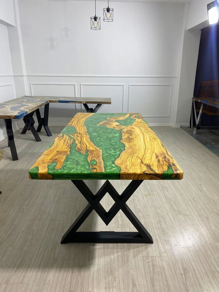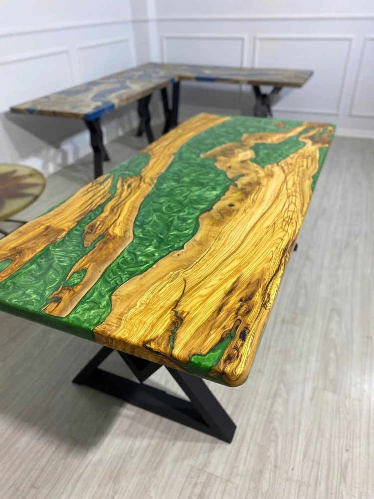 Epoxy Resin Table, Custom Emerald Green Table, Epoxy River Dining Table Top Deco