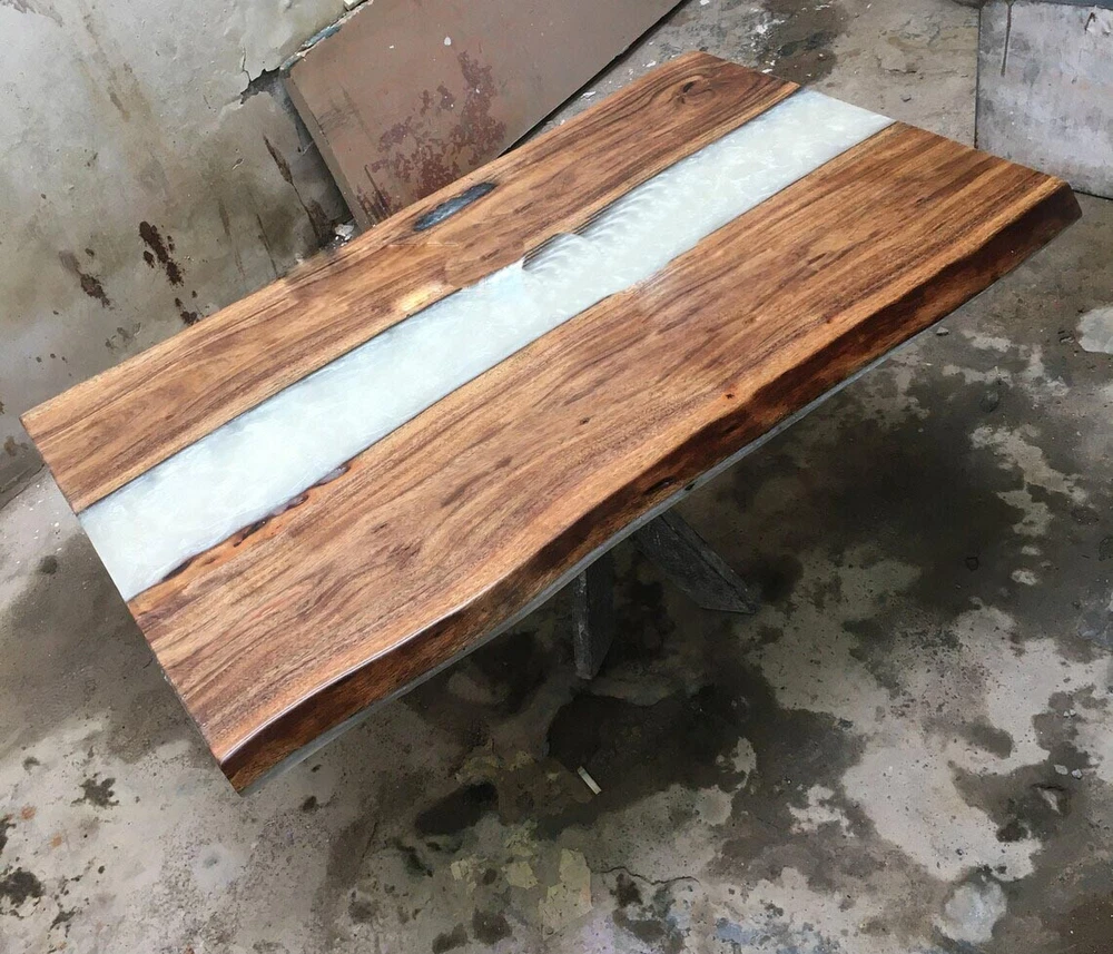 Epoxy River wood countertop, Natural Epoxy Wood Dining Table Farmhouse Furniture