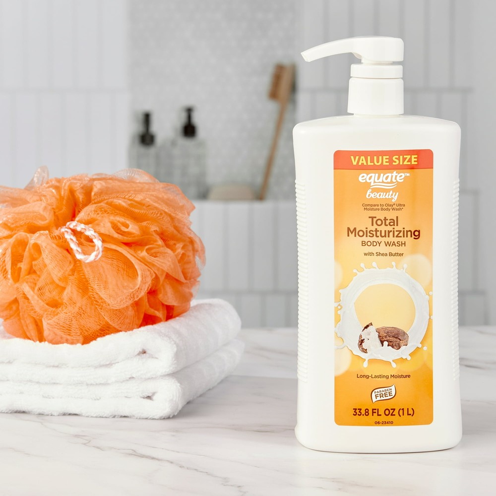 Let skin be hydrated and feel luscious while washing with the Equate Total Moisturizing Body Wash. It allows for a soothing shower or bath experience that helps skin health during cleansing. It's very easy to use, just squeeze the desired amount of body wash onto a wet washcloth, sponge, net pouf or hand and apply to your body. Using a circular motion, work it into a rich, creamy lather and then rinse it off. The Equate Moisturizing Body Wash softens skin as it is applied, creating a relaxing experience that strips away sweat, dirt and grime while leaving you feeling silky and smooth. The clean design comes complete with an easy pump top cap for dispensing the body wash and the size keeps one stocked up to have plenty on hand. So one can rest assured that it is produced with strict quality guidelines and is backed by a quality guarantee. Bottle that will help with continued beauty and radiant skin for months to come. Easy pump top Paraben-free Created responsibly at a LEED-certified facility For external use only Leaves skin soft and suptle Can be used everyday Provides a hydrated glow after every wash Long lasting moisture Formulated without Parabens