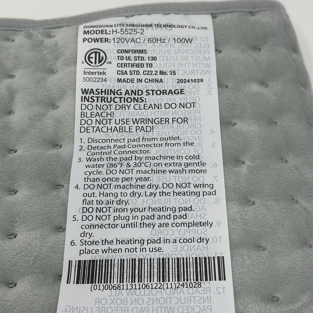 Brand: EQUATE Country/Region of Manufacture: China Color: Gray Material: Fabric Power Source: Electric gtin13: 681131106122 Department: Adult Type: Electric Heating Pad UPC: 681131106122 MPN: 005635 Features: Reusable, Washable, With Temperature Settings, 6 Timer Settings, Auto Off