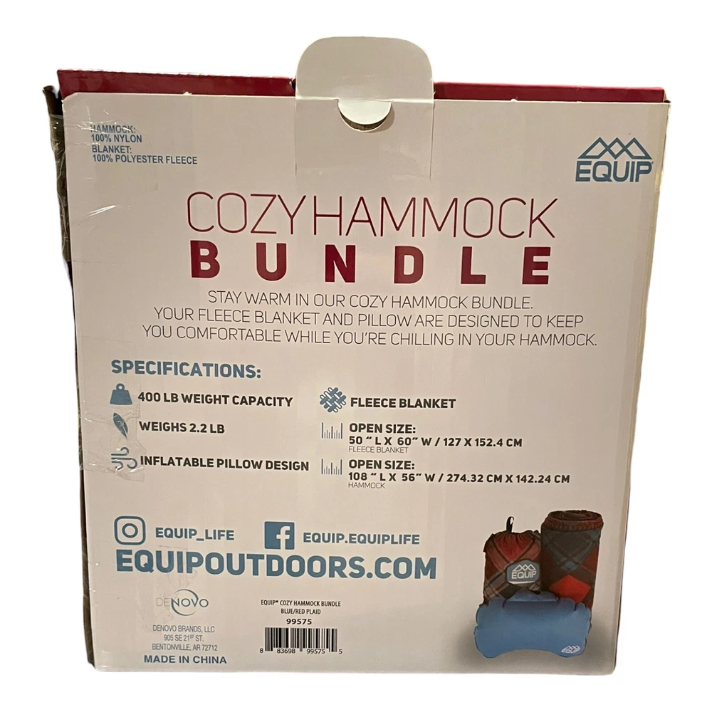 Equip Hammock Cozy Bundle Travel, Blanket, Pillow. New In Box 1 Person.