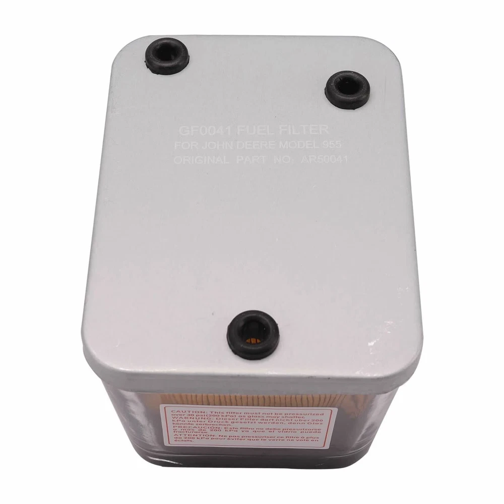 AR50041 Snap-on Fuel Filter Replacement for John Deere 20 30 40 50 55 Series Tractor with Transparent Bowl 40 Micron 820 930 1035 1120 1350 1520 2150 2355 2450 2650 3150 Replace WK13001 Product Description Fitment:Replacement for John Deere 20 30 40 50 55 Series Tractor 820 930 1035 1120 1350 1520 2150 2355 2450 2650 3150,Claas/Renault Tractor Series 103-52 103-54 106-54 and more. Replaces Part number:AR50041,S72182,6005009417,BF909,86370,P551130,MF1065,FF203,WK13001,ST369,33370. Feature:The filter is designed for your tractor to extend engine life.Easy to install,just snap on.Filter element rate 40 micron.Recommended to change it regularly. Transparent Bowl:With the glass transparent bowl,you could clearly know when to change the filter. Package includes:1 x AR50041 Snap-on Fuel Filter. Fitment: Claas/Renault Tractor Series 100:103-52,103-54,106-54 Series 20:820,920,1020,1120,1520,3020,4000,4020,4320,4520,4620,7020 Series 30:830,930,930VU,1030,1030OU,1030VU,1130,1530,1630,1630OU,1630VU,1830,2030,2030OU,2130,2630,3030,3130,4030, 4230,4430,4630 Series 35:1035,1035EF,1035EV,1635,1635EF,1635EV,2035,2035EF,2135,3135 Series 40:840,8440,940,940V,1040,1040V,1140,1140F,1140V,1640,1640F,1840,1840F,2040,2040F,2040S,2140,2240,2440,2640, 2840,2940,3040,3140,3340,3640,3640S,4040,4040S,4240,4240S,4440,4640,4840 Series 45:1445F,1745F,1845F,2345F Series 50:1350,1550,1750,1750V,1850,1850F,1850N,1850V,1950,1950F,1950N,2150,2250,2250F,2350,2450,2450F,2550,2650,2650CS, 2650F,2650N,2650TSS,2750,2850,2950,3050,3150,3350,3650,4050,4050E,4250,4350,4450,4650,4850 Series 55:2155,2255,2355,2355N,2555CS,2555TSS,2755,2855N,2955,3055,3155,3255,4055,4255,4455,4555,4755,4955 Series 60:4560,4760,4960 Series 7000:7800 Series 8030:8430,8630 Series 8640:8640 Combine Harvester Series:1055,1065,1068H,1072,1075,1075H,1085,1158,1166,1169HY,1174,1177,985 Replaces Part number: AR50041,S72182,6005009417,BF909,86370,P551130,MF1065,FF203,WK13001,ST369,33370