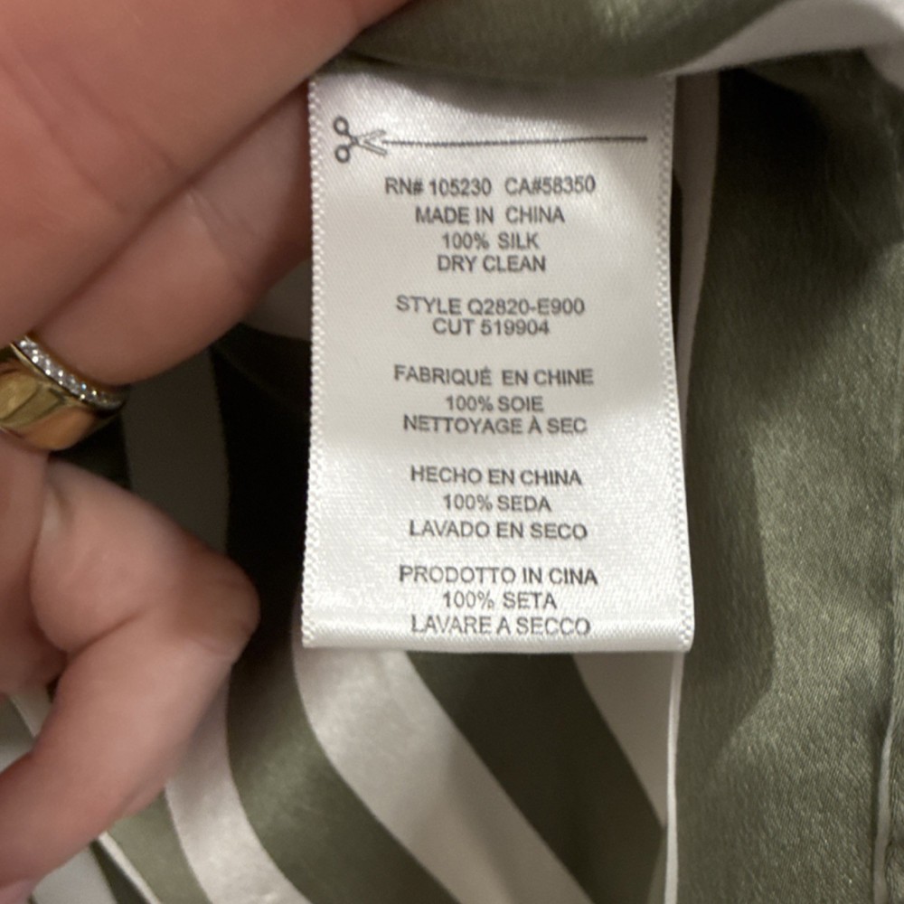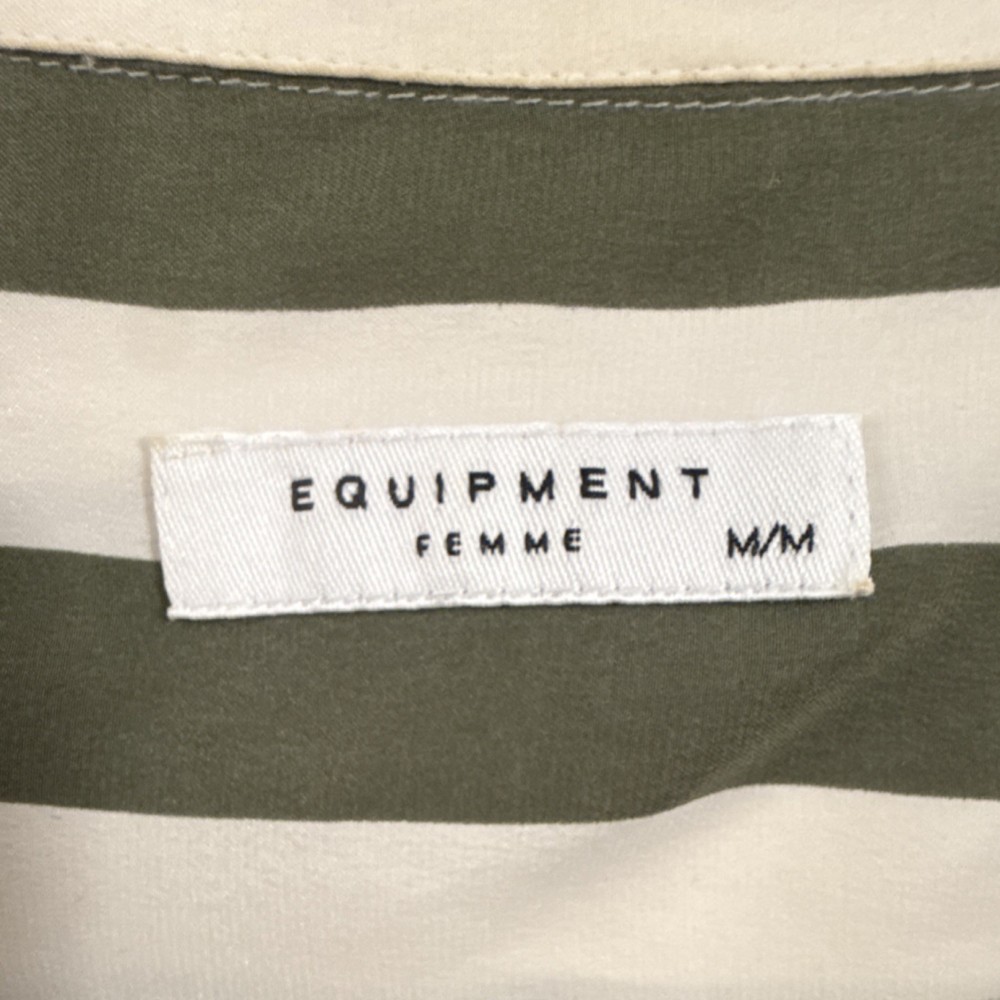 Equipment Silk Striped Green White Collared Button-Down Blouse M Long Sleeve