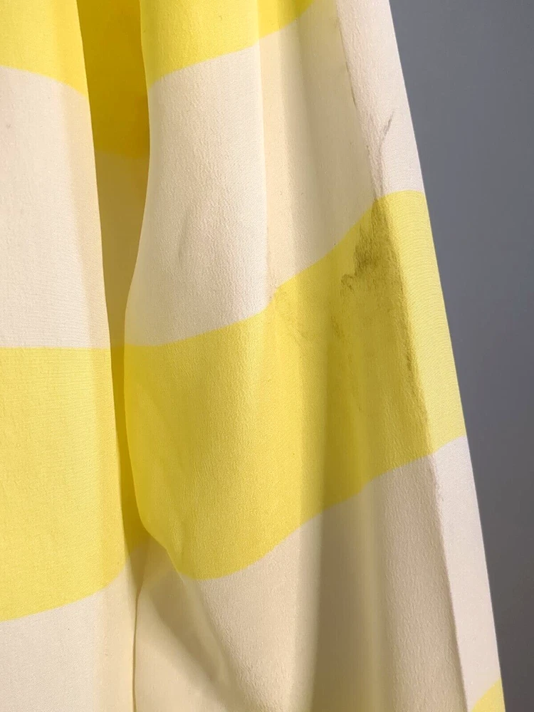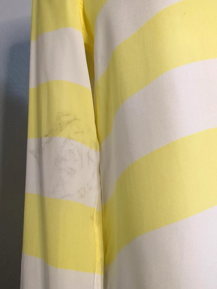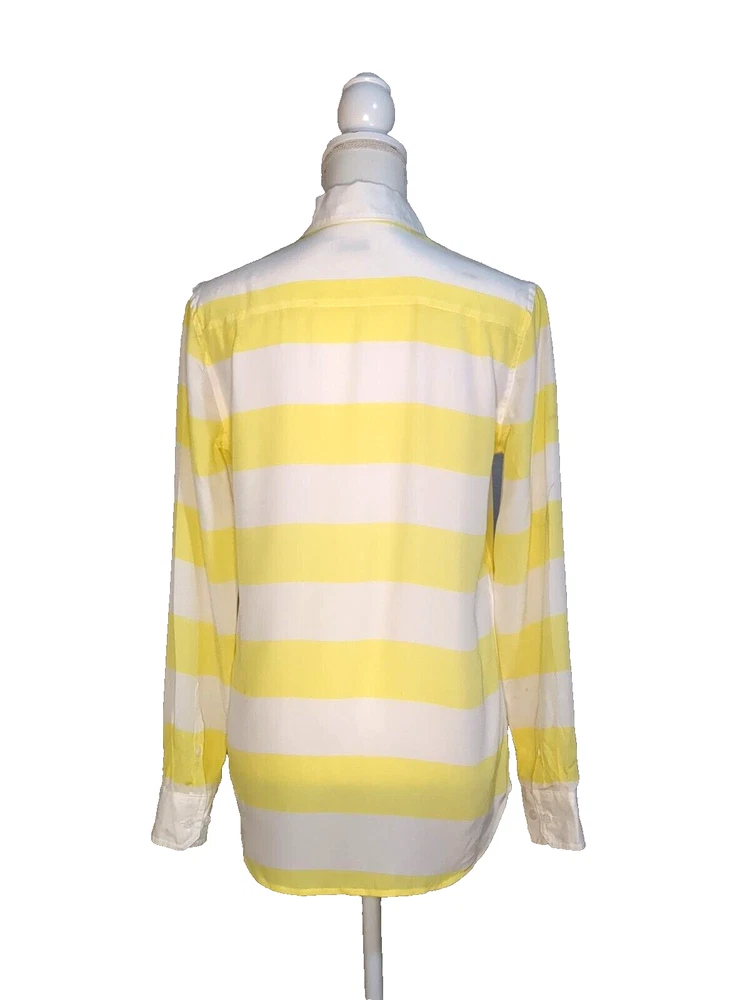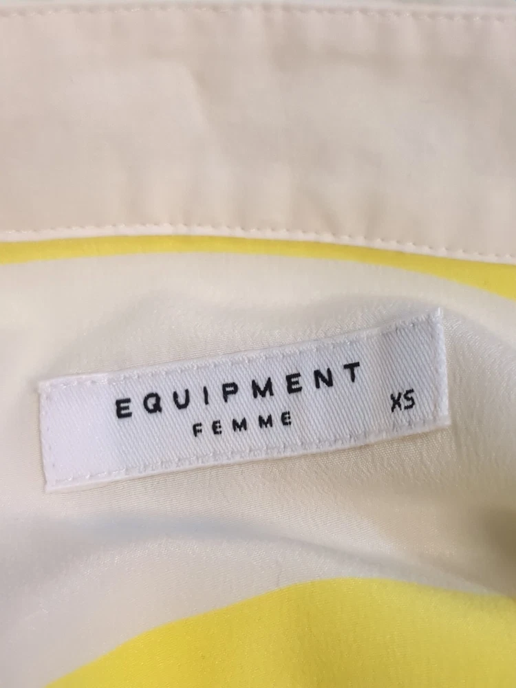 Equipment Women's Silk Button-Up Blouse Yellow White Striped w/ Pocket XS