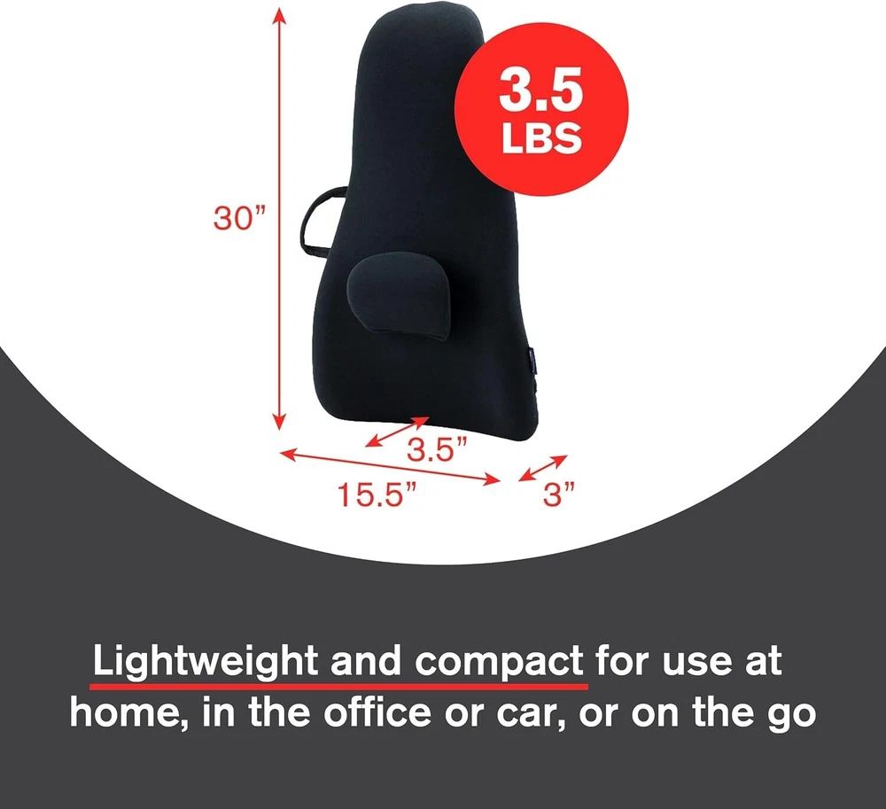 Product Dimensions: 19 X 3.5 X 22 Inches; 3.5 Pounds Brand: Unbranded gtin13: Does not apply Material: Polyurethane, Polyurethane Foam, Polycarbonate Age Range (description): Adult Features: Ergonomic, Posture Correction, Back Pain Relief, Portable, Adjustable Lumbar Support, Convenient Handle, Impact Resistant Core Type: Back Support Specific Uses For Product: Posture Correction Color: Black Use For: Back UPC: Does not apply Department: Unisex-adult Size: 1 Count (pack Of 1)