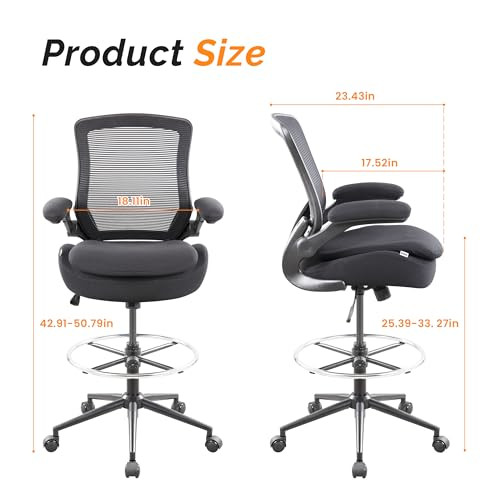 Return Policy Fast Delivery Trusted seller Drafting Chair Tall Office Chair, Ergonomic Standing Desk Computer Stools with, Flip-up Armrests, Adjustable Height and Big Foot-Ring, Comfortable Double Seat Cushion Foam Seat(Balck) Product Description Double Seat Cushion Drafting Chair:Soft two-layer foam polyfoam seat cushion, suitable for young people, women, children at home, office, public places, using this double seat cushion office chair will make you comfortable to sit for a long time, and you won't complain about the seat for the pain of the buttocks, this chair is the good choice of young women. Comfortable Office Chair:This chair adopts the latest ergonomic design with S-shaped structure that fits perfectly to the curves of the body. The seat cushion is made of high quality fabric. The seat has raised sides and a U-shaped design that conforms to the curve of the hips to protect them from injury . Highly elastic natural foam for a soft sitting experience even after long periods of use. The backrest is made of breathable mesh to increase air circulation and reduce back stuffiness. High Quality & Easy Installation:This office chair has passed the BIFMA test and is equipped with a stronger four-level gas rod that has been certified by SGS .Made of high-quality nylon fabric and high-density shaped memory cotton. It is comfortable. This chair won't collapse or deform the cushion after long-term use.The desk chair comes with a detailed manual for easy installation, taking about 20 minutes to install. Easy installation and protects your torso,you deserve it. Wide Application& Product Size:The office drafting chair is not suitable for people who are too large. Chair height: 43.5 to 50.8 inches. Cushion height: 24.8 to 32.1 inches from the floor. Cushion front and back distance: 22.4 inches. Cushion width: 21.1 inches.This tall desk chair is suitable for many scenes and audiences, you can use this chair anyw you need such as office, home, laboratory etc. It is also suitable for various people such as draftsman, designer, etc. Double Seat Cushion Drafting Chair:Soft two-layer foam polyfoam seat cushion, suitable for young people, women, children at home, office, public places, using this double seat cushion office chair will make you comfortable to sit for a long time, and you won't complain about the seat for the pain of the buttocks, this chair is the good choice of young women. Shipping Returns Payment Shipping Shipping is FREE to all addresses other than APO/PO boxes in the lower 48 states. All our stock ships from US-based warehouses. Shipped via USPS or UPS (depending on location and package weight) Unless stated otherwise, all orders will ship within 24-72 hours of your payment being processed. Check our feedback to see the great reviews of FAST shipping we offer. Returns Seller does not accept returns Payment We currently accept payment via eBay managed payments only. Once payment is cleared, we will dispatch your shipment within 1-3 business days. Please refer to the "Shipping" tab for more information regarding shipping speed to your destination.