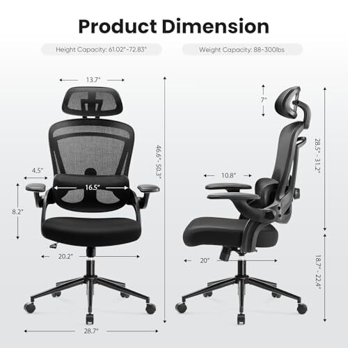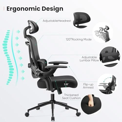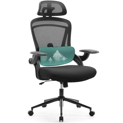 Return Policy Fast Delivery Trusted seller Ergonomic Mesh Office Chair, High Back Desk Chair with 2D Headrest, Up&Down Lumbar Support, Swivel Computer Task Chair with Adjustable Flip-up Armrests,Black Product Description 【Ergonomic Office Chair】 The high back office chair with adjustable headrest, armrests and lumbar support can properly support your neck, back and arms, which makes you sit healthier and more comfortable.Enjoy the freedom to relax with our chair's 120° rocking mode. Perfect for taking breaks and reducing stress during your workday. 【Adjustable Lumbar Support&Headrest】The headrest of this ergonomic home office chair is adjustable in height and 42° angle to meet the needs of work and relaxation. The mesh lumbar support can be adjusted up and down,freely to fit the lumbar area more closely and relieve the fatigue of sitting for a long time. 【Space-Saving】Flip-up armrests are available and won't be in your way when not in use. The Armrests of the computer chair provide comfortable support for your arms and can be flipped up to save space effectively while not in use. 【Breathable & Comfortable】Ergonomic features an all-elastic premium mesh back and a high-density sponge seat making the mesh office chair a good choice for all-day comfortable office seating. The unique mesh design is skin-friendly and breathable, which keeps you cool all day. 【Smooth Movement & Stability】Our comfy office desk chair comes with smooth and multi-direction casters, which allow you to move the chair around effortlessly. They can run smoothly on tile, wooden floors, carpets, and other floorings. The maximum weight capacity is 300 lbs. Shipping Returns Payment Shipping Shipping is FREE to all addresses other than APO/PO boxes in the lower 48 states. All our stock ships from US-based warehouses. Shipped via USPS or UPS (depending on location and package weight) Unless stated otherwise, all orders will ship within 24-72 hours of your payment being processed. Check our feedback to see the great reviews of FAST shipping we offer. Returns Seller does not accept returns Payment We currently accept payment via eBay managed payments only. Once payment is cleared, we will dispatch your shipment within 1-3 business days. Please refer to the "Shipping" tab for more information regarding shipping speed to your destination.