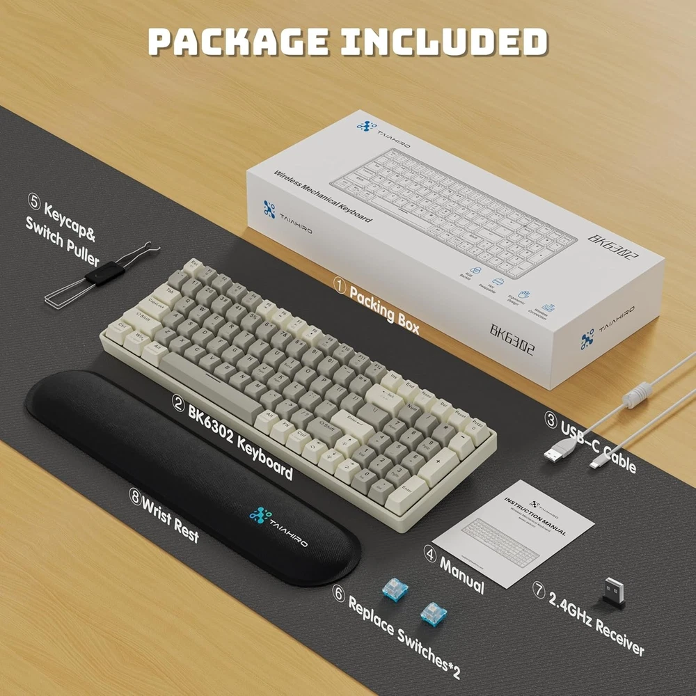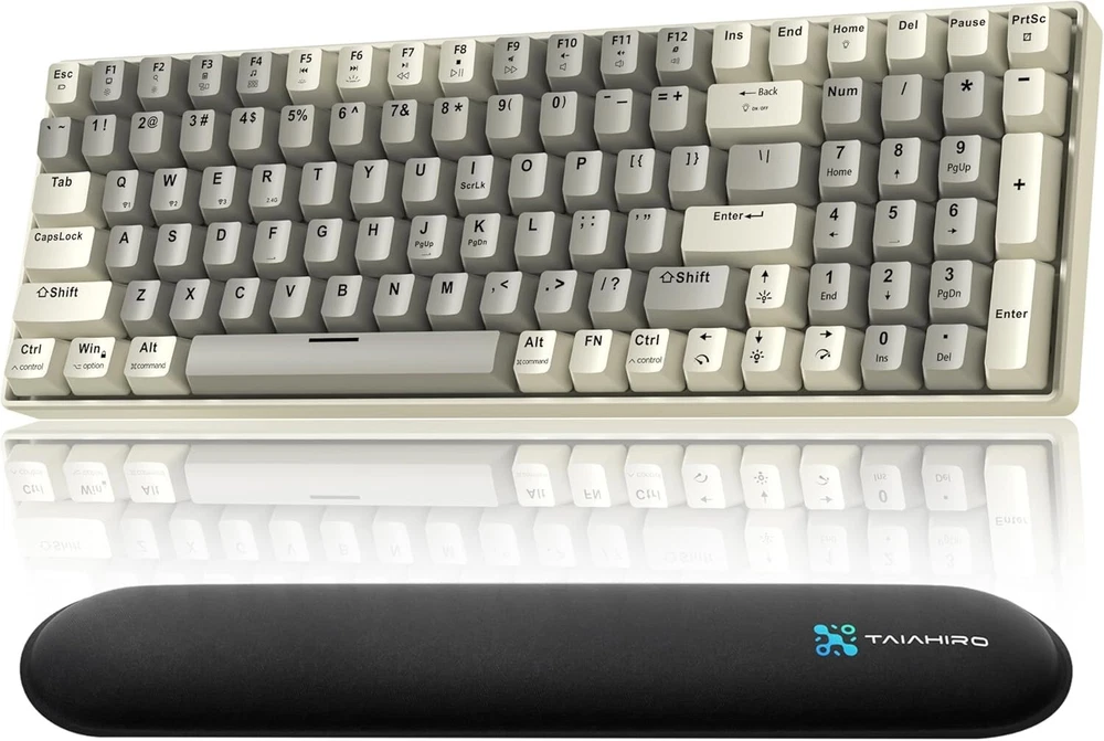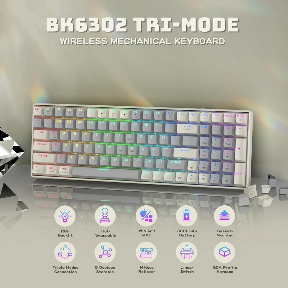 Type: Mechanical Brand: Unbranded Number Of Keys: 98 Material: Plastic gtin13: Does not apply Connectivity Technology: Bluetooth Item Weight: 2.23 Pounds Item Width: Wireless Gaming Keyboard Item Length: Wireless Gaming Keyboard Keyboard Backlighting Color Support: Rgb Keyboard Language: English Batteries: 1 Lithium Ion Batteries Required. (included) Package Dimensions: 14.84 X 5.47 X 2.44 Inches Features: Hot-Swappable Design, Detachable Wrist Rest, Rainbow Backlighting, Adjustable Brightness, Ergonomic Design, 3000mAh Battery, 6-Color RGB Backlighting, 24 Lighting Modes Compatible Devices: Laptop, Ps5, Pc, Tablet, Mac Connectivity: Wireless & Wired, USB-C, Bluetooth, 2.4G Color: Creamy Gray UPC: Does not apply Style: Creamy Gray, 100 Keys Wireless Mechanical Keyboard Recommended Uses For Product: Gaming, Office Keyboard Layout: QWERTY (Standard) Item Height: Wireless Gaming Keyboard