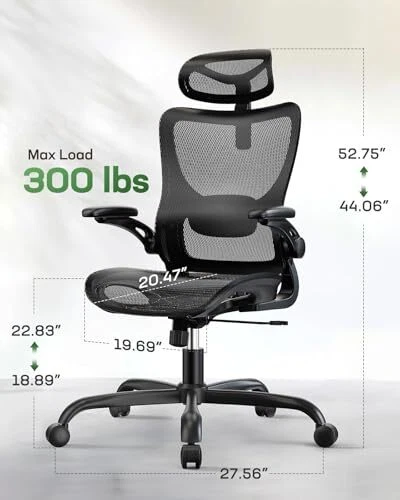 Return Policy Fast Delivery Trusted seller Ergonomic Mesh Office Chair High Back Home Office Desk Chair with Adaptive Lumbar Support, 2D Headrest, 3D Flip-Up Armrests, Height Adjustable and Rocking Tilt for Home Office and Gaming Product Description Breathable Mesh Design: Our ergonomic mesh office chair keeps you cool and comfortable, whether you’re working or gaming for long hours. The high-resilience mesh seat and backrest offer superior support and allow maximum airflow, preventing heat buildup and keeping you refreshed and focused. Fully Adjustable, Ergonomic Comfort: The ergonomic office chair features lumbar support vertically and horizontally adjustable for personalized lower back relief, and a 2D adjustable headrest that conforms to your neck and head for optimal support, ensuring your ultimate comfort. 3D Flip-Up Armrests: The comfortable office chair features 90° flip-up armrests, allowing you to neatly tuck the chair under your desk to save space. When lowered, the armrests offer 15° swivel and 1.96" depth adjustment, helping you find the most comfortable position for optimal arm support. Ergonomic Full-Body Support: Designed to follow the natural curve of your spine, the ergonomic gaming chair helps prevent strain from long hours of sitting. The seat is 15% larger for added comfort, providing ample space for your hips and thighs. The adjustable 90°-120° tilt lets you switch between work and relaxation with ease. Unmatched Stability & Durability: The computer desk chair has been thoroughly tested to include 2866 lbs load bearing testing and 100,000x seat durability testing to ensure long-lasting performance. With an SGS Class 3 gas lift and sturdy rolling casters, the comfy office chair can hold up to 300 lbs with ease. Shipping Returns Payment Shipping Shipping is FREE to all addresses other than APO/PO boxes in the lower 48 states. All our stock ships from US-based warehouses. Shipped via USPS or UPS (depending on location and package weight) Unless stated otherwise, all orders will ship within 24-72 hours of your payment being processed. Check our feedback to see the great reviews of FAST shipping we offer. Returns Seller does not accept returns Payment We currently accept payment via eBay managed payments only. Once payment is cleared, we will dispatch your shipment within 1-3 business days. Please refer to the "Shipping" tab for more information regarding shipping speed to your destination.
