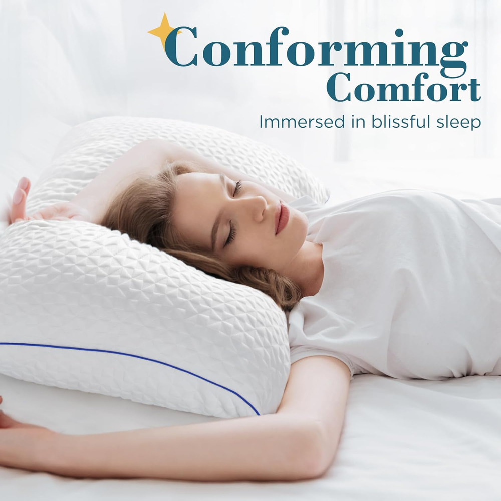 PRODUCTS DESCRIPTION AZ/55 Adjustable Loft and Firmness: Finicky sleepers will also like Viewstar adjustable pillows. Just unzip the casing, then add or remove fill to your liking. Great Neck and Shoulder Support: Viewstar memory foam pillows are designed with an ergonomic focus. The pliable memory foam perfectly conforms to your head and neck, ensuring optimal alignment of the head, neck, and spine. Long-Lasting Comfort: The pliable and elastic memory foam filling keeps the pillow plump all night long and never flattens. Say goodbye to constant adjustmentsand and enjoy uninterrupted for better sleep. Trustworthy High-quality Materials:The ultra-soft and breathable cover, combined with shredded memory foam and a ventilated filler, keeps the bed pillows cool and refreshed. It is CertiPUR-US certified, ensuring safe, chemical-free materials for your comfort. Hassle-free Use: Hotel Pillows come vacuum-sealed for shipping and bloom like new when opened. Please air out for 24 hours or wash the outer cover to dissipate odors. The outer cover can go right into your washing machine and dryer. Product Description Viewstar Bedding Collections The video showcases the product in use. The video guides you through product setup. The video compares multiple products. The video shows the product being unpacked. Due to an increase in the demand for sleeping quality, we break the stereotypes of traditional pillows and create the personalized pillows for customers, which makes users have an excellent sleep. Melt into Comfort Supportive and puffy, viewstar memory foam pillows will gently embrace your head and neck, indulge yourself with this soft but firm feeling which as if lying in mother's arms. Perfect sleep from Adjustable for Customized Support and Loft To have a good night's sleep, the loft — the height of the pillow — is crucial . Viewstar Memory Foam Pillows with adjustable design puts you in control. They are firm enough to support your head and neck, yet soft enough for comfort . Personalized support helps you release stress and get a deep rest. Side sleepers, rejoice! Side sleepers need a higher, firmer pillow that supports the head and eases pressure on the shoulders. Shredded Memory foam pillows fit the bill completely. You can add or remove the shredded-foam filling based on the need of sleeping to get your ideal loft and firmness. How to adjust the pillows? Unzip the outer and inner covers Add or remove appropriate amount of memory foam filling according to your needs Try the adjusted pillow to seeif it fits your head and neck Multiple attempts to get the best fit pillow The video showcases the product in use. The video guides you through product setup. The video compares multiple products. The video shows the product being unpacked. Quality meets comfort Cloud-like Filling Shredded memory foam filling is dynamic and unique, bringing support to delight every slumber. Quality meets comfort Gorgeous Feeling Simultaneously breathing and elegance. Quality meets comfort Long-lasting Plump The air-permeable design keeps it plump like a marshmallow and not easy to clump or go flat. Quality meets comfort We Care About Details Upgraded! The both of zippers has become more smoother. 1 Premium Filling 2 Skin-friendly Cover 3 Fluffy Design 4 Smooth Zipper Considerate for You Meet the Needs of All Sleeping Positions No matter what sleepers you are ( Back, Side or Stomach ), memory foam pillows can cradle your head and neck to provide optimal comfort, because of "Adjustable". Designed with Your Needs in Mind Each pillow comes with an extra 200g of filling so you can DIY your own perfect pillow. Renew in a Breeze Simply toss the removable cover in the washer and dry for easy care. Please note that the inner core is not washable.