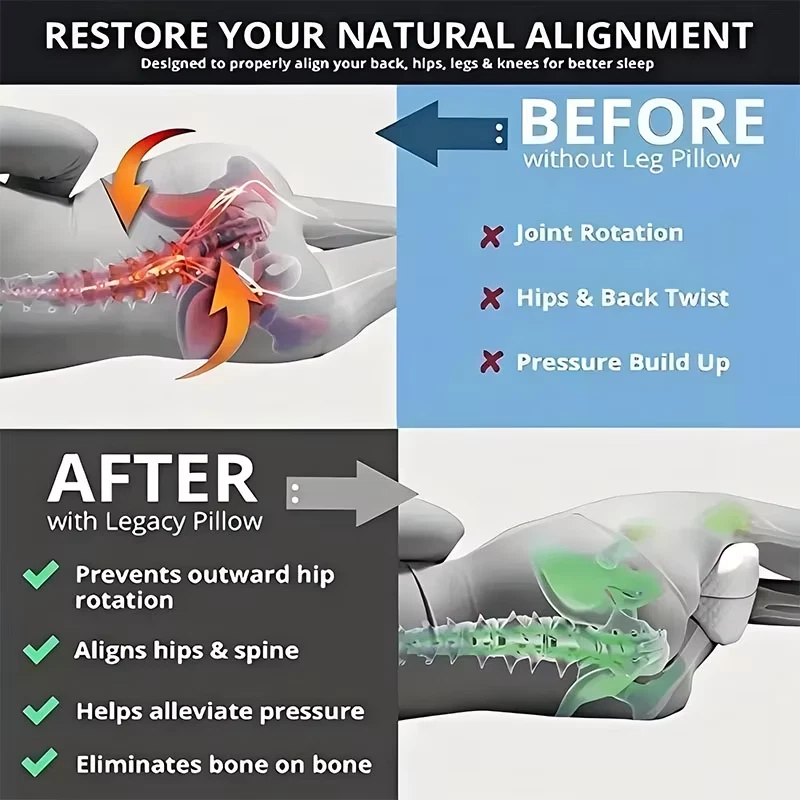 Ergonomic CURVED DESIGN -- The ergonomic design of Leg Pillow perfectly fits the curve of the human body, keeps your legs in a natural position during sleep. Unlike traditional knee pillows, the knee pillow features a true ergonomic design with its soft curves & heart shape to fit men & women comfortably and can fit the legs and knees at the same time. Brings you a healthy and deep sleep that lasts all night! π ELASTIC BAND DESIGN: Our knee cushion is equipped with an elastic strap so that it will not slip when you adjust your sleeping position, no need to fumble when the light is off, and ensure a comfortable sleeping all night long. π PREMIUM MEMORY FOAM & REMOVABLE & WASHABLE COVER -- knee pillows are made of premium memory foam. The pillow cover is made of high-quality breathable and soft cationic fabric which does not shrink or pilling, and it will keep the memory foam dry and hygienic for a long time. Please take out the memory foam through the zipper and wash the pillow cover by hand or machine. NOTE: The Memory Foam Pillow Core CANNOT be washed. π SLEEP BETTER FOR ANYONE -- sleeping knee cushion is a good companion for people who lack sleep. Anyone suffering from sleeping discomfort can benefit from knee wedge pillows. You can place it wherever you need, such as thighs, calves, knees, or even neck. The leg bolster really helps a lot and is warmly welcomed by pregnant women and side sleepers. π WIDE APPLICATIONS -- The leg cushion for sleeping can not only be used at bed, sofa, office, recliner, airplane or long-distance travel but also a good present to show your care to somebody you love. This good-looking pillow is widely used when people are sleeping, reading or watching TV.