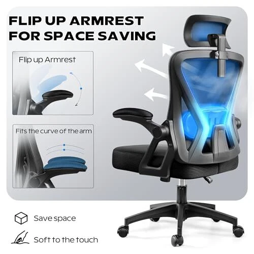 Return Policy Fast Delivery Trusted seller Ergonomic Office Chair, Home Office Desk Chair with Headrest, High Back Mesh Chair with Flip-up Armrests, Comfy Desk Chair with Lumbar Support, Rolling Swivel Task Computer Chair for Home Office Product Description [Ergonomic Office Chair]Designed with ergonomics, the mesh office chair is crafted to support the spine's natural curvature and encourage good posture, helping to alleviate back pain during extended periods of sitting. Its adjustable backrest tilt and lumbar support, cater to a wide range of user sizes and preferences, ensuring comfort throughout the day; [Breathable Mesh Back] Designed with a high-quality breathable mesh material, the home office desk chair promoting excellent air circulation to keep you cool and comfortable even during long hours' sitting. The mesh back also adds a modern aesthetic to the chair, aligning with the dynamic nature of workspaces; [Adjustable Headrest and Lumbar Support] Featured by a practical headrest that can be adjusted to different heights and angles, providing support for head and neck, reducing strain during long work hours. The adjustable lumbar support offer the right support, alleviating lower back pain associated with prolonged sitting; [Flip-up Armrest] The ergonomic mesh office chair boast armrests that can be flipped up and out of the way when not needed, providing flexibility and saving space. Ensuring that your arms are well-supported. Multiple adjustment features allow you to personalize your sitting posture; [Durability and Maintenance] Despite its comfortable and breathable design, the ergonomic office chair with adjustable lumbar support is built to last with a sturdy frame and high-quality materials. Wood layer is made of FSC-certified wood. SGS certified level 3 cylinder and sturdy metal base make the executive office chair an idea choice. Shipping Returns Payment Shipping Shipping is FREE to all addresses other than APO/PO boxes in the lower 48 states. All our stock ships from US-based warehouses. Shipped via USPS or UPS (depending on location and package weight) Unless stated otherwise, all orders will ship within 24-72 hours of your payment being processed. Check our feedback to see the great reviews of FAST shipping we offer. Returns Seller does not accept returns Payment We currently accept payment via eBay managed payments only. Once payment is cleared, we will dispatch your shipment within 1-3 business days. Please refer to the "Shipping" tab for more information regarding shipping speed to your destination.