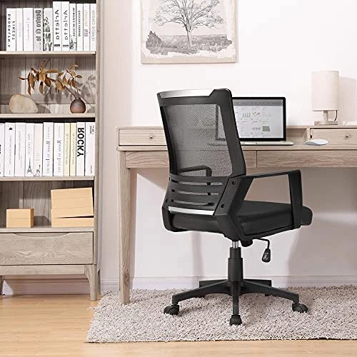 Return Policy Fast Delivery Trusted seller Ergonomic Office Chair Leather Seat and Mesh Back Computer Chair Executive Chair Mid-Back Rolling Swivel Chair with Lumbar Support and Armrests Adjustable Height for Office Meeting, Black Product Description Mesh & Leather Combination: The match of mesh and PU Leather is the highlight of this rolling desk chair. Smooth faux leather upholstery brings exceptional comfort and understated elegance, while the breathable mesh back keeps you naturally cool even after prolonged use. An ideal addition to the home office, computer workstation or study room Comfortable & Sturdy: With its generous 20’’ (W) x 21’’ (D) seat and high-density foam cushion, this modern desk chair provides great cushioned support to reduce seating muscle fatigue. Capable of up to 265lb with SGS-certified gas lift, quality nylon base and non-marking swivel casters Ergonomic Office Chair: Curved backrest perfectly fits the human body and adapts to the spine’s natural curve, alleviating back tension and discomfort during long office/meeting/studying sessions. This computer chair has a rocking function and can be adjusted from 18’’ to 22’’ in seat height to match various sitting positions Tilt Tension Knob: Back tilt tension is easy to control, and you can choose to tighten or release the tilt-tension by turning the knob beneath the seat while rocking back and forth 360° Smooth Mobility: Twisting and turning about is integral within the office. So this ergonomic swivel chair adopts a 23.5’’ wide star base and comes with 5pcs 360-degree swivel wheels, ensuring fluent and quick movement from one task to another without scratching the wooden floor Shipping Returns Payment Shipping Shipping is FREE to all addresses other than APO/PO boxes in the lower 48 states. All our stock ships from US-based warehouses. Shipped via USPS or UPS (depending on location and package weight) Unless stated otherwise, all orders will ship within 24-72 hours of your payment being processed. Check our feedback to see the great reviews of FAST shipping we offer. Returns Seller does not accept returns Payment We currently accept payment via eBay managed payments only. Once payment is cleared, we will dispatch your shipment within 1-3 business days. Please refer to the "Shipping" tab for more information regarding shipping speed to your destination.
