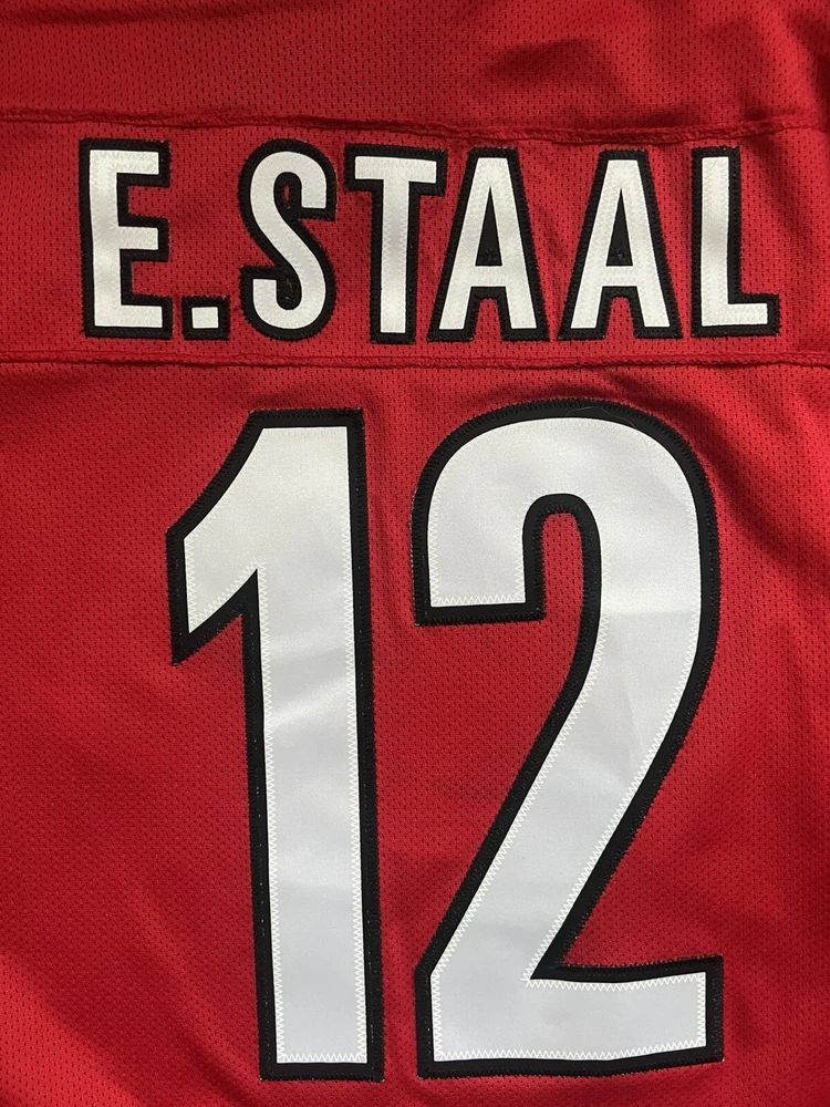 Color:RedGender:BoysLeague:National Hockey League (NHL)Player:Eric StaalSport:HockeySize:LBrand:ReebokProduct:JerseyOfficially Licensed:YesTeam:Carolina Hurricanes