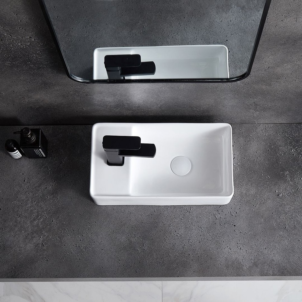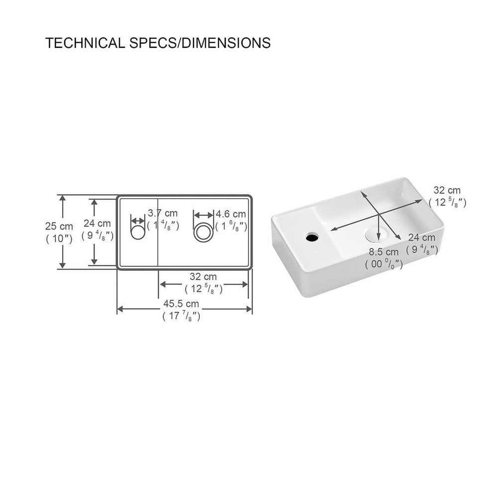 Elegant and Contemporary, Eridanus Mini Wall-Hung Sink Sets the Tone For the Rest of Your Bathroom Décor with the Versatile Style of Gloss White/Matte Black Finish.Features: True Minimalist Fashion and Timeless Design Exquisite High-Quality Ceramic Makes the Basin Extremely Durable and Long-lasting Seamless and Solid, the Basin is Stain, Scratch and Impact Resistant Non-Porous Surface Prevents Discoloration and Fading With Single Faucet HoleInstallation: Wall-Hung / VesselDimensions: 17.9" W. x 9.8" D. x 4.3" H. Free Shipping Over $49.99* Details Eridanus 18" L x 10" W Wall-Hung Bathroom Sink Cloakroom Powder Room Sink Product Description: Elegant and Contemporary, Eridanus Mini Wall-Hung Sink Sets the Tone For the Rest of Your Bathroom Décor with the Versatile Style of Gloss White/Matte Black Finish. Features : True Minimalist Fashion and Timeless Design Exquisite High-Quality Ceramic Makes the Basin Extremely Durable and Long-lasting Seamless and Solid, the Basin is Stain, Scratch and Impact Resistant Non-Porous Surface Prevents Discoloration and Fading With Single Faucet Hole Installation Wall-Hung / Vessel Dimensions 17.9" W. x 9.8" D. x 4.3" H.