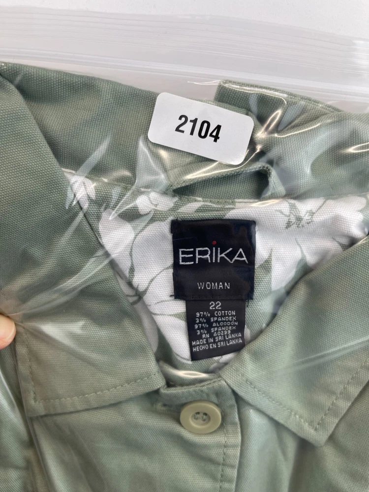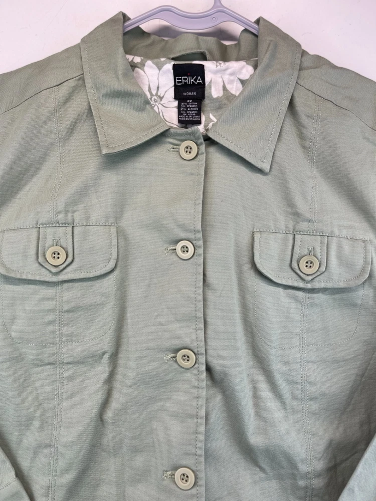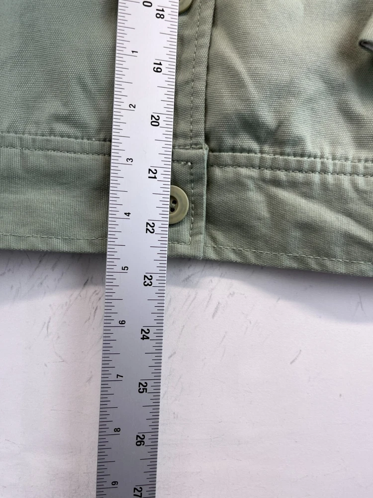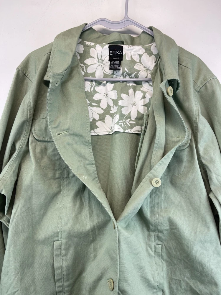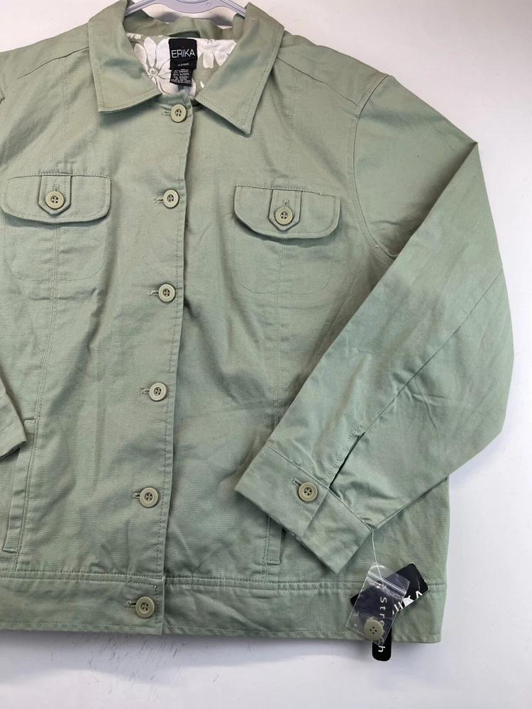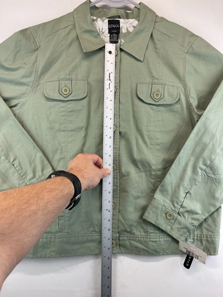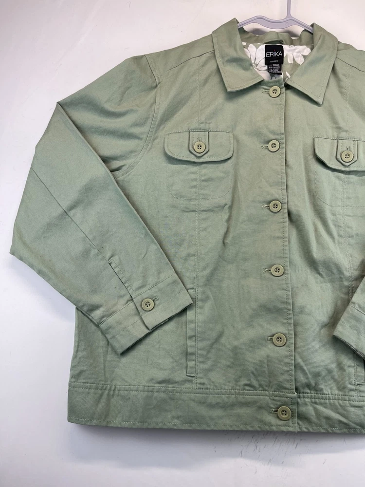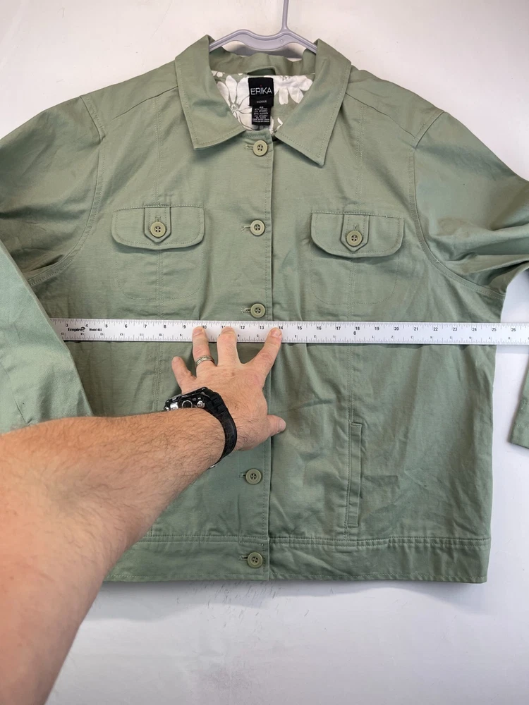 This Erika canvas jacket is a must-have for any fashion-forward woman. The olive green color and button closure make it perfect for any occasion, whether you're traveling, going to a party, or just running errands. The mid-length coat features long sleeves and front pockets, making it practical as well as stylish. Made from high-quality cotton, this jacket is machine washable and easy to care for. The solid pattern and bohemian theme add a touch of personality to your outfit, while the regular fit ensures comfort and versatility. This jacket is a great addition to any wardrobe, and it's sure to make you stand out from the crowd. Very good preowned condition with no issues. Please see all photos. For clothing specifically, see photos for all measurements and/or any issues if applicable. Pay close attention to the measurements as the size of the garment may quite possibly be different than the actual measurement(s) due to washing, shrinkage, or stretching as these are used clothes. The size in the title is the size on the tag of the garment. See photos for measurements of actual measurements as they may differ. ALWAYS CHECK THE MEASUREMENTS IN THE PHOTOS. This will remove any questions on measurements as well as always cover the possibility of human error in the listing(s) in the case of a typo or oversight. All clothing and shoes have been washed/cleaned, and comes from a smoke free environment. If shoe trees appear in the photos, they are for photography purposes only to illustrate how the shoes look filled out, and are not included. I am available for questions. I accept or negotiate reasonable offers. Have an amazing day. Thank you.