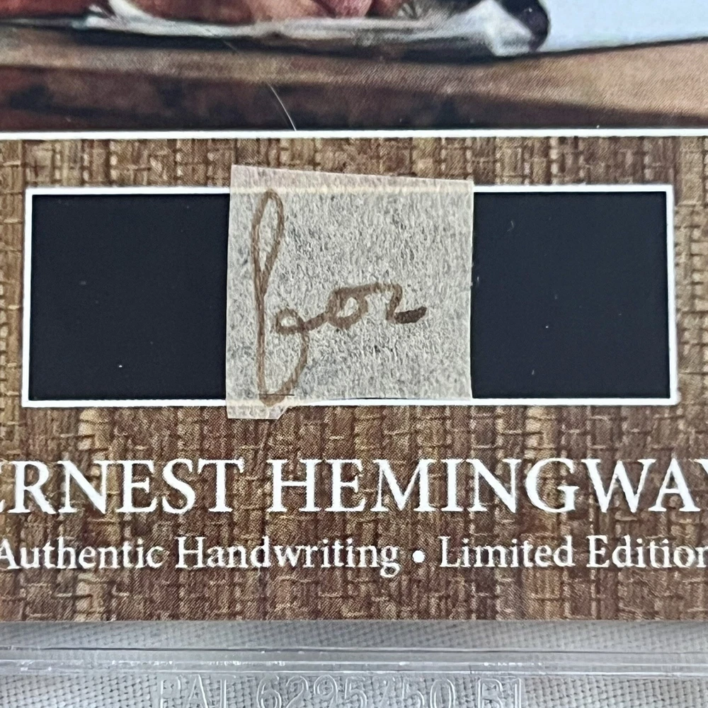 Offered for the first time ever – genuine handwritten words from renowned American novelist, short story writer and journalist, Ernest Hemingway, authenticated and encapsulated by Beckett. You will not receive a copy of the letter from Hemingway, the 4th image is shown purely to illustrate where the words came from. You will only receive the BAS encapsulated word, encapsulate #00017195998. An exclusive CutWordCo Limited Edition, this is the first set of Hemingway words encapsulated by Beckett we’ve ever offered for sale! Each individual word was carefully removed from an original handwritten letter from Hemingway. Own penmanship from the same hand that wrote classics such as “The Old Man and the Sea”, and “For Whom the Bell Tolls”, and “A Farewell to Arms”. Each encapsulated word was individually removed from a January 1958 letter from Hemingway on his beloved Finca Vigia letterhead. Writing from his home overlooking downtown Havana, Hemingway found himself unable to reach a deal on his novel, “Across the River and into the Trees”, despite the persistence of his correspondent. Genuine Hemingway documents can often fetch thousands of dollars. The cost of authenticating a single word of Hemingway’s handwriting is $100 on Beckett's website.