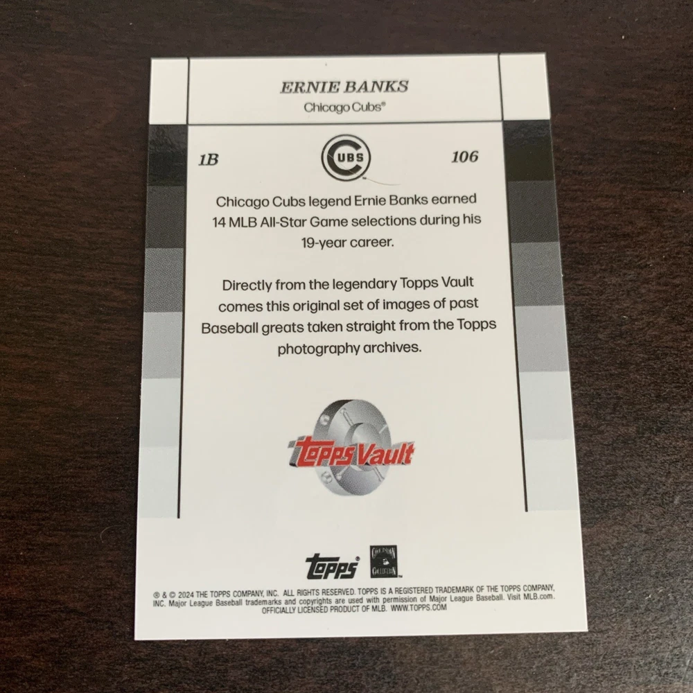 Ernie Banks 2024 Topps Black and White Topps Vault HOF SP Chicago Cubs #106. Condition is Ungraded. Shipped with USPS Ground Advantage.