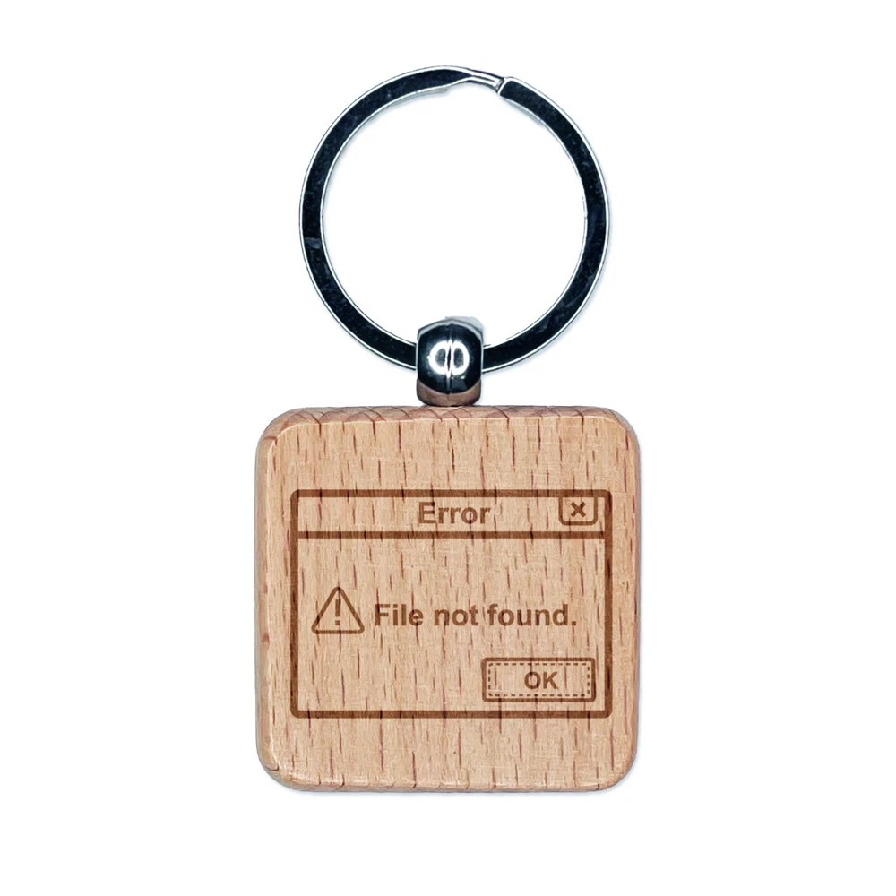 Error File Not Found Computer Technology Engraved Wood Square Keychain Tag Charm