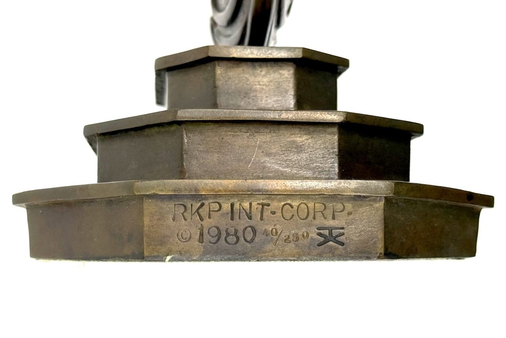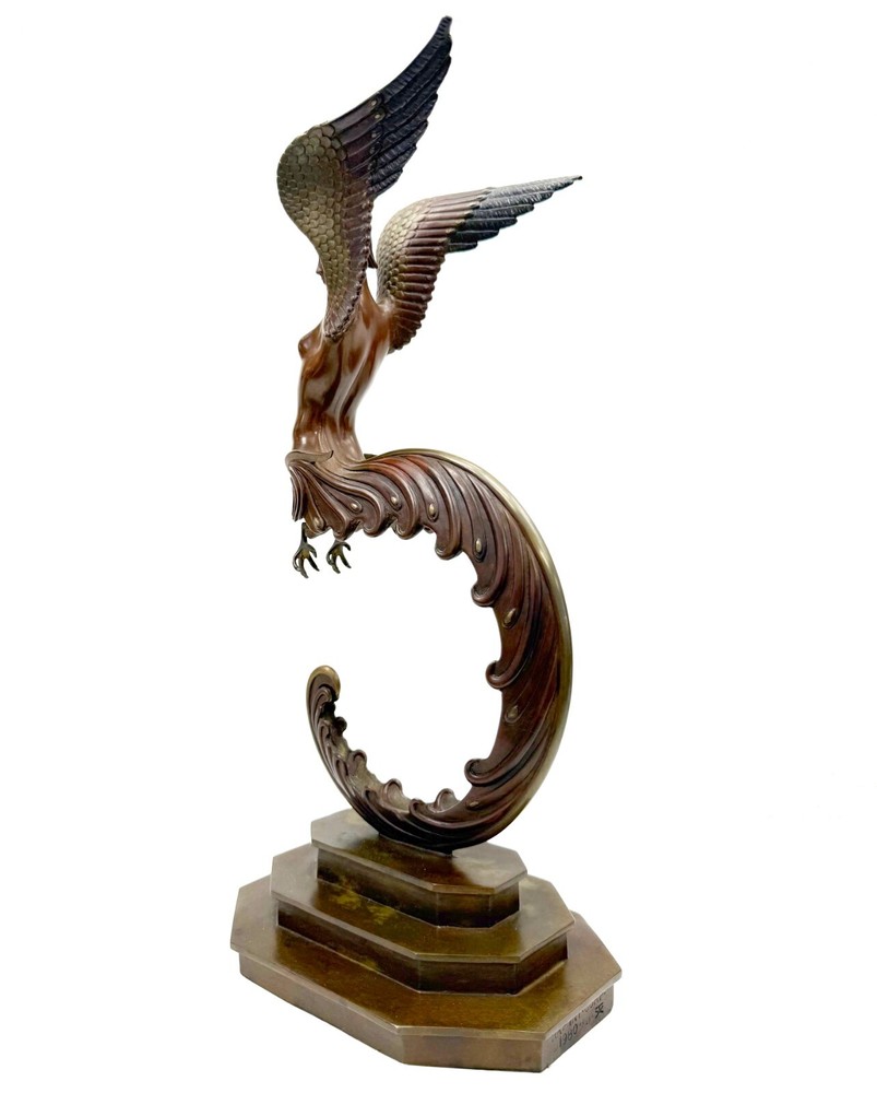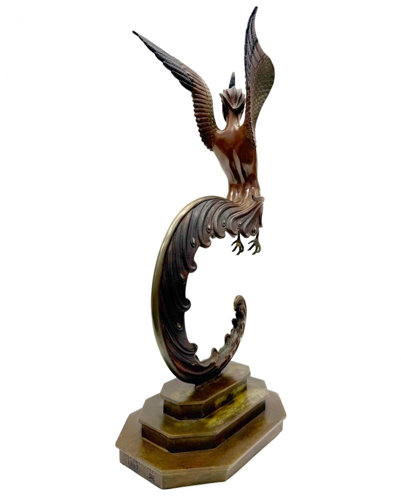 Artist: Erte Title: Firebird Medium: Bronze sculpture Size: 16 x 5.3 x 8 inches Year: 1981 Edition: of 250 (stamp numbered) Signature: Unsigned Condition: Artwork is in excellent condition Certificate of authenticity: Yes Published by Tallix/Fine Art Acquisitions. About the Artist: Erté (French, 1892–1990) was a Russian artist and designer known for his glamorous opera sets, jewelry, costumes, and graphic arts. His work is quintessentially emblematic of the Art Deco style in its use of tapering lines and simplified ornamentation inspired by the natural world, and his figurines are internationally known and desired as collectible objects. Born Roman Petrovich Tyrtov on November 23, 1892 in St. Petersburg, Russia to an aristocratic family, he moved to Paris in 1910, disobeying his father’s wishes for him to become a naval officer. In 1915, he secured a contract with Harper’s Bazaar magazine, producing numerous illustrations and other media. Today, Erté’s work can be found in the collections of the Metropolitan Museum of Art in New York, the Los Angeles County Museum of Art, and the Victoria and Albert Museum in London. He died on April 21, 1990 in Paris, France. Shipping method: insured FedEx or UPS with online tracking Domestic Shipping: FREE International Shipping: $500 (buyer is responsible for any import/VAT fees) Return Policy: We gladly offer a no questions asked refund on your purchase if you are not completely satisfied within 30 days of the artwork being delivered to you. Please contact us either via Ebay messaging or calling our Gallery. Artwork must be received in its original saleable condition as purchased and accompanied by all its original documents. Buyer is responsible for return shipping costs. About us: Gallery Art is South Florida's largest Fine Art gallery, located in the heart of Aventura. Our showroom features beautifully framed and displayed originals, oils, acrylics, limited-edition prints, and glass and bronzes by today's most esteemed and collectible artists. With over 30 years in the art business, and 20 years in the same location, Gallery Art's knowledgeable and friendly staff will make sure your experience is a pleasurable one. We conveniently offer an all-encompassing approach to Fine Art purchasing and handling.