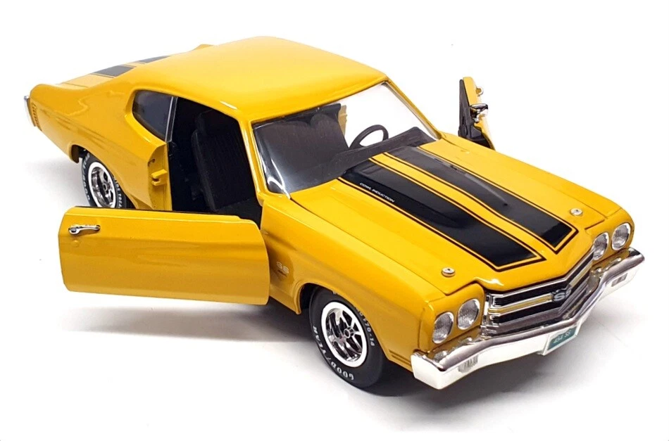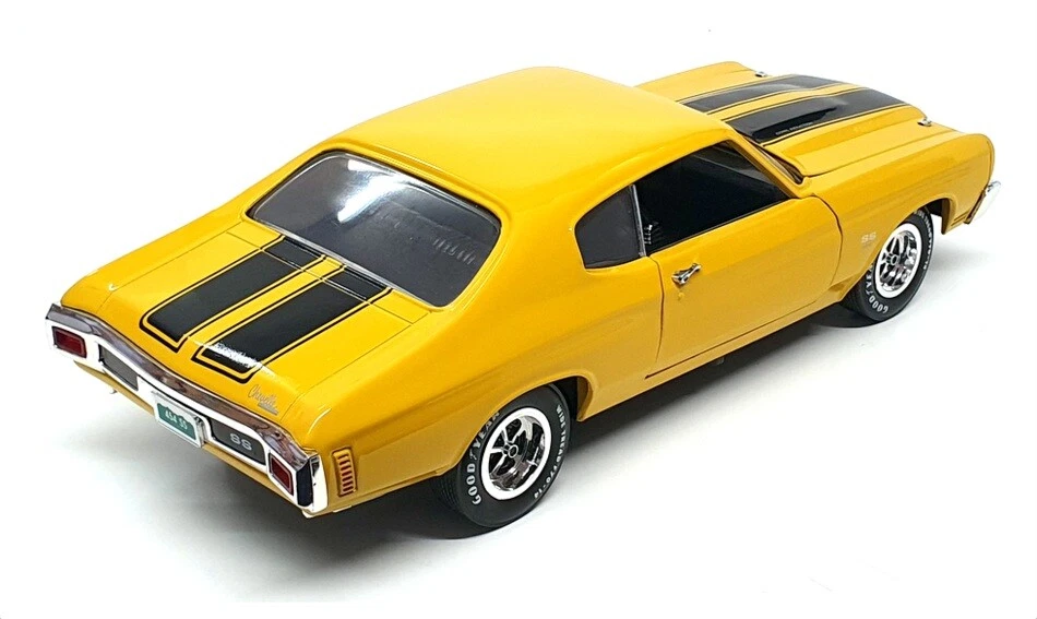 Ertl 1/18 Scale 91123D - 1970 Chevrolet Chevelle SS 454 - Yellow/Black Contact Us Home About Us Feedback Contact Us Add to favourites Ertl 1/18 Scale 91123D - 1970 Chevrolet Chevelle SS 454 - Yellow/Black click thumbnails above to enlarge Shop Home Our Feedback Ask a Question Product Description 1/18 Scale Diecast Model by Ertl The MODEL is in EXCELLENT condition - previously displayed. NO ORIGINAL BOX model will be professionally packed prior to shipping. SEE IMAGES FOR BEST DESCRIPTION AND GRADING CONDITIONS. Product Details Scale 1/18 Material Diecast Brand Ertl EAN 7427265131769 Additional Info GRADING CONDITIONS MINT - The item is in perfect condition. NEAR MINT - Almost perfect, any imperfections will be extremely minor. EXCELLENT - The item will have had very careful use, with only small imperfections. GOOD - The item will have had more use, showing obvious imperfections. FAIR - The item will have heavy signs of wear, showing major imperfections. SPARES or REPAIR - The item will be in a poor condition. Payment Shipping Returns About Us Methods of Payment Our preferred method of payment is Paypal. Any questions please ask! Thanks. WORLDWIDE MAIL-ORDER SPECIALISTS Shipping within the UK is FREE OF CHARGE - Plese see the eBay postage tab for other worldwide shipping charges. We ship from our warehouse is the UK. We ship worldwide everyday using a Tracked / Signed For service. Over 30 years of experience shipping collectible models worldwide - you can trust our service. Any questions, please ask. Thanks for looking ! Returns We hope you are completely satisfied with your purchase. In the unlikely event that there is a problem / fault with the item we will happily provide you with a refund (excluding returns postage). About Us R.M.Toys Ltd is a family led company with over 50 years worth of experience specialising in high quality collectable models & worldwide delivery. We have continued to expand and develop as the retail market and technology has evolved and we are in no doubt we will need to continue with that trend so we hope we have been able to showcase our service and provide you, our customer, with everything you have required. Our aim is to ensure no matter what the model, we will provide an excellent service experience. To us, this means great availability, excellent customer service as well as quick & secure delivery, to anywhere across the world. All that is left to say is Thank You for taking the time to read our page and using our company to assist with your collection and gift needs - every order placed is gratefully received and as important to us as the next. Kind Regards The RM Toys Team R.M.Toys Ltd - All Rights Reserved || Design by Tapika Store The MODEL is in EXCELLENT condition - previously displayed. NO ORIGINAL BOX model will be professionally packed prior to shipping. SEE IMAGES FOR BEST DESCRIPTION AND GRADING CONDITIONS.