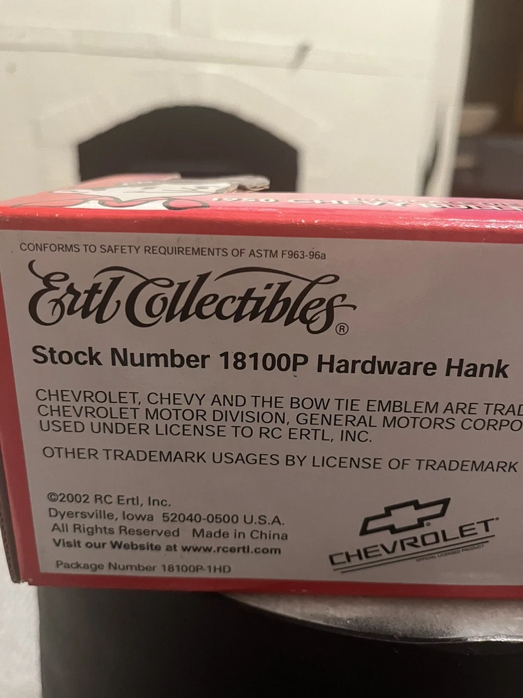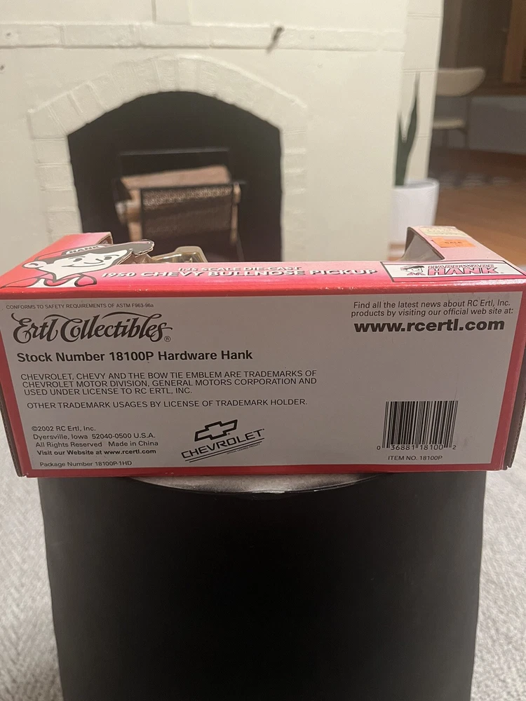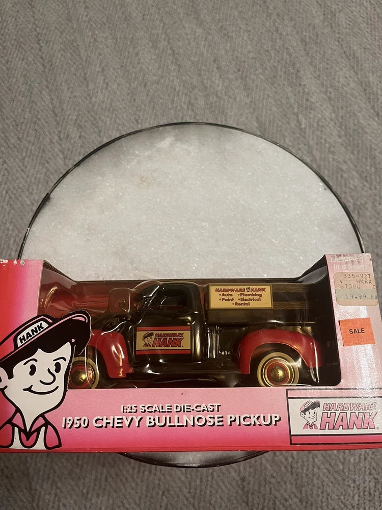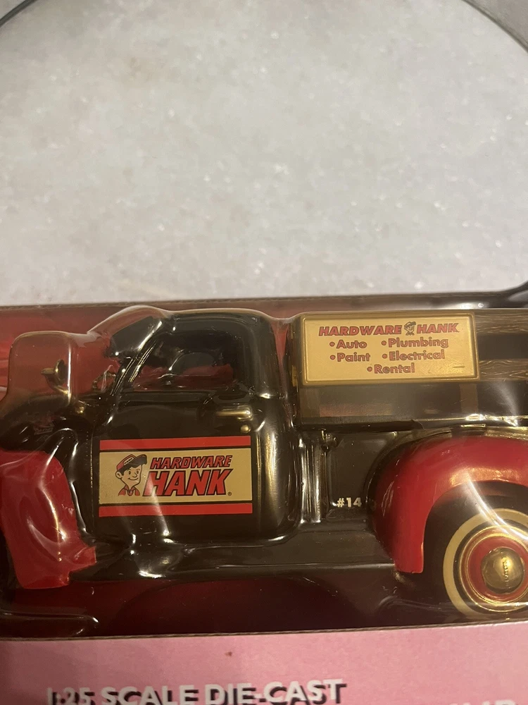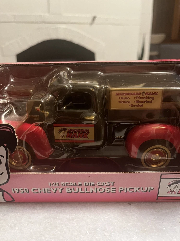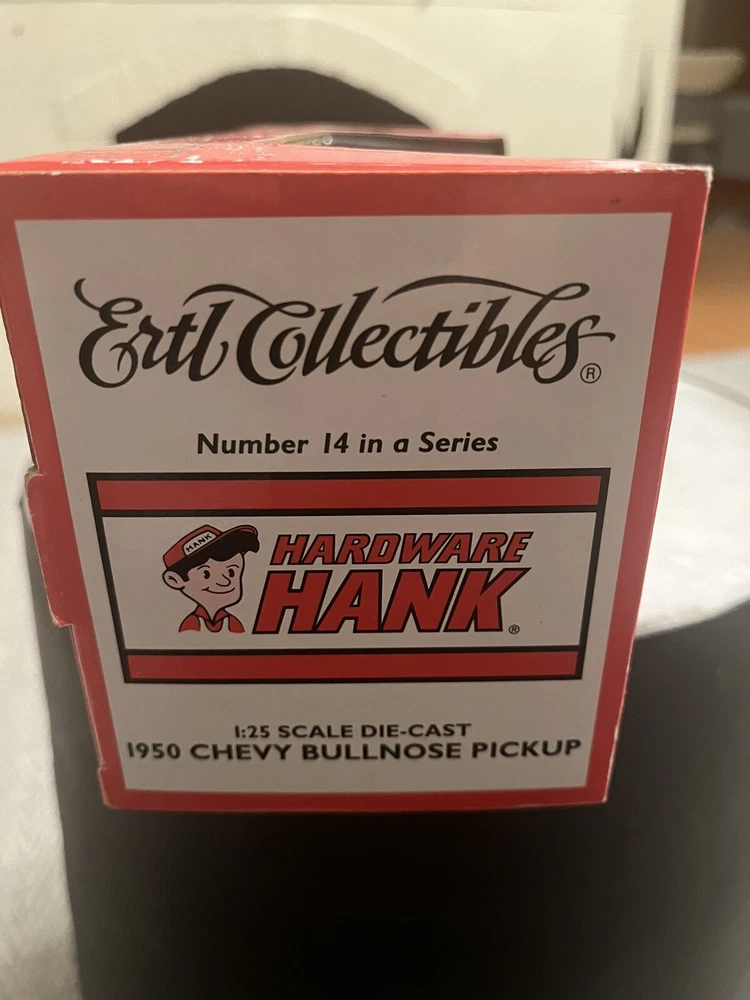 Series:ERTL American MuscleColor:Black And Redgtin13:Does not applyVehicle Type:Pickup TruckYear of Manufacture:2001Model:20523Vehicle Year:1950Brand:ErtlCharacter Family:Hardware HankUPC:Does not applyVehicle Make:ChevroletMaterial:DiecastScale:1:25