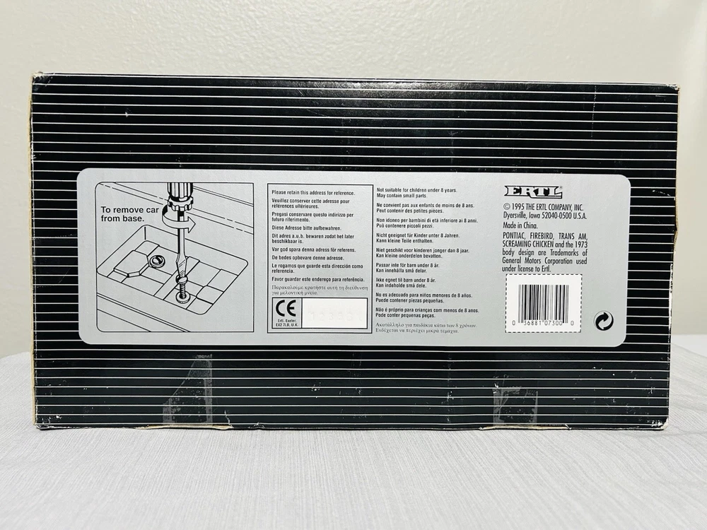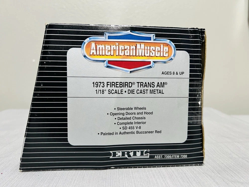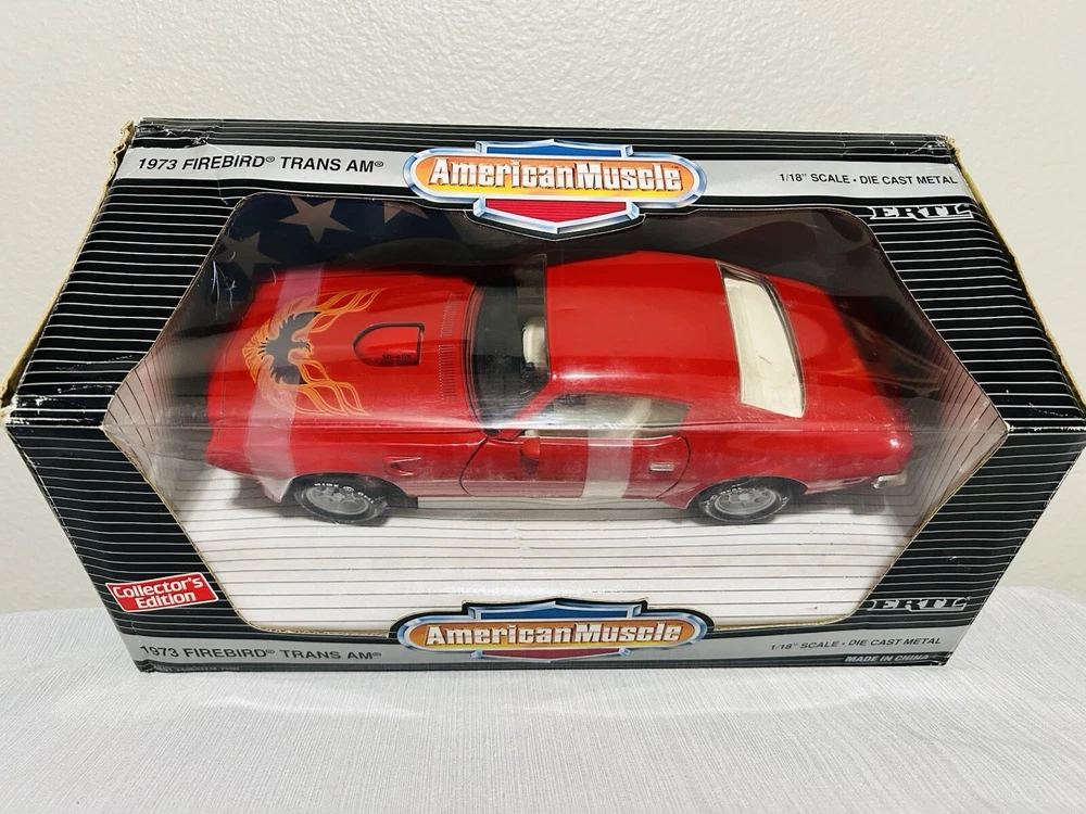 Color:RedYear of Manufacture:1998Scale:1:18Gender:Boys & GirlsVehicle Year:1973Vehicle Type:CarMaterial:DiecastSeries:ERTL American MuscleVehicle Make:PontiacFeatures:Limited Edition, Special EditionBrand:ErtlCustomized:NoAutographed:NoAge Level:8-11 Years, 12-16 Years, 17 Years & UpTheme:ertlCharacter Family:ertlModel:Pontiac Firebird Trans Am
