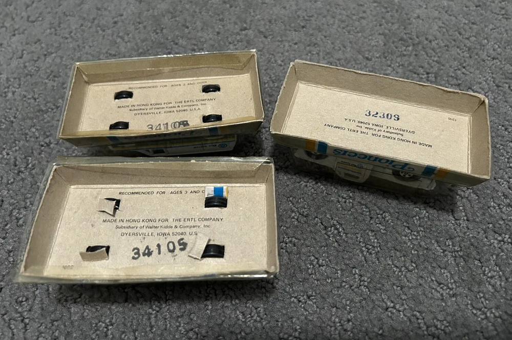 2 Vans 1 Pick-up Truck - sticker still on plastic All are still in original packaging. I took one plastic cover off to check quality, and the car is in very good shape. The plastic is tinted. Sold as is, all 3 together.