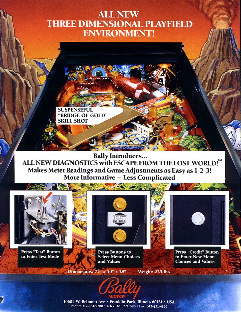 Escape From The Lost World Pinball FLYER Dinosaurs Fantasy Original 1988