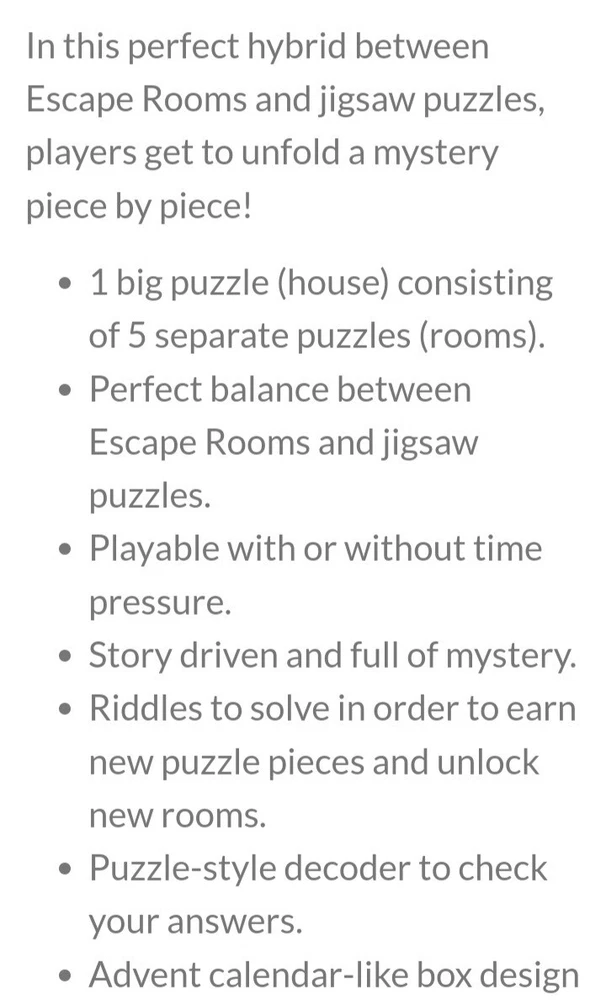 Material:CardboardTheme:EscapeBrand:Identity GamesNumber of Pieces:500 -gtin13:0563490355000Color:Multi-ColorAge Level:12-16 Years, 17 Years & UpEstado del artículo:NuevoYear:2021Character Family:Escape RoomUPC:0563490355000