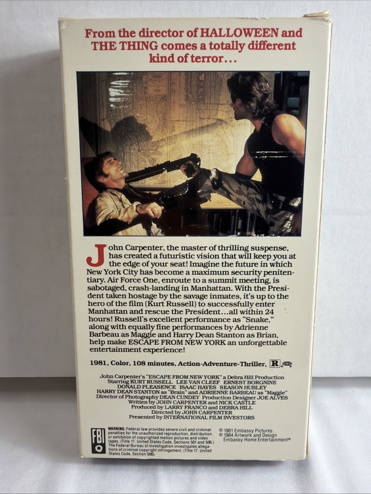 Escape from New York VHS 1981 John Carpenter Kurt Russell Nelson