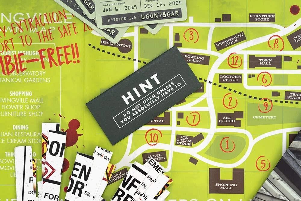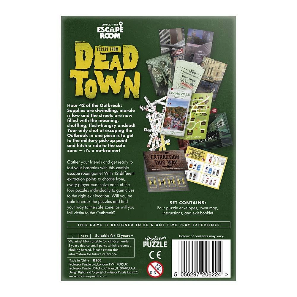 Calling all escape room and mind game enthusiasts. Escape From The Dead Town - Escape Room Game by . A unique zombie-themed escape room board game that will keep up to 4 players hooked for 45 minutes. Will you manage to escape before the town becomes completely overrun by the undead? Set contains 4 puzzle envelopes, town map, instructions, and exit booklet. Part of ’s Escape Room Games collection - A collection of kids & adults brain-teasing board games. Escape From The Dead Town - Escape Room Game by . A unique zombie-themed escape room board game that will keep up to 4 players hooked for 45 minutes. Will you manage to escape before the town becomes completely overrun by the undead? Set contains 4 puzzle envelopes, town map, instructions, and exit booklet. Part of ’s Escape Room Games collection - A collection of kids & adults brain-teasing board games.