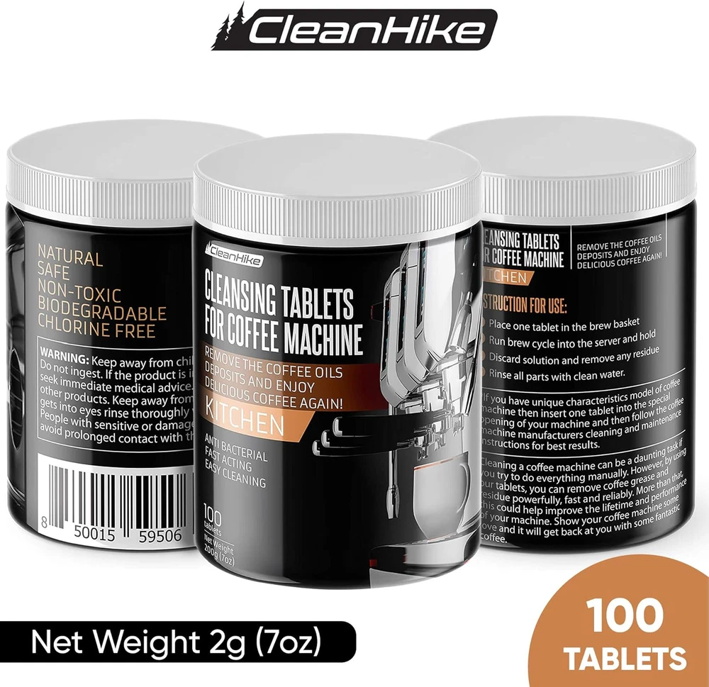 Store New Arrivals Add to Favorite View Feedback Contact Espresso Machine Cleaning Tablets - (100 Tablets) for Jura, Miele, and Universal Description Item Package Quantity 1 Item Volume 500 Milliliters Package Dimensions 4.21 x 3.11 x 2.52 inches Item Weight 10.5 ounces Material Feature Biodegradable, Eco Friendly, Natural Item Form Tablet Specific Uses For Product Coffee Maker Safe and Eco-friendly : Natural, non-toxic ingredient is safe for you and the environment. This biodegradable formula is also chlorine-free, leaving no traces whatsoever. Reliable : 100 powerful tablets created for professional barista use. Effectively removes coffee grease and residue for longer lasting, better performing machines. Take good care of what you use every day- constantly and reliably. Quick and Easy : All you need is 1-2 cleaning tablet, water, and a bit of your time. Just place it in the brew basket, run one cycle, discard, and finish off with a rinse. Economical : Not only are these fast-acting tablets less than 1/10 the price, they can be universally used on any espresso machine, even high-end brands such as Jura, Miele, and more. Get on board with confidence : Your satisfaction is our utmost priority. If you are not fully content with your purchase, please contact us and we'll replace them for a new one or help you access the reimbursement process straight away. Product Description CleanHike Espresso Machine Cleaning Tablets Make Your Espresso Machine Cleaning Simpler Espresso machines are a staple of any barista, but due to its complex structure and millions of parts cleaning can be excruciating! It’s tragic that it cannot be skipped- because it’s critical for keeping the machine at its maximum lifetime and optimal performance. Now, let us take the burden off your hands. What is it? Industrial-strength espresso machine cleaning tablets. Upon contact with water, the tablets release a gentle oxygen fizz that eliminates odor and effectively removes coffee grease to keep machine and its parts clean. How does it work? Eliminate lingering odor and taste Removes stubborn grease and stains Easy Use. No scrubbing needed Maintains cleanliness in hard-to-reach areas Accessible value for everyday use How does it work? In a separate bowl, dissolve 1-2 tablets in hot water to clean filters and group handles Place 1 tablet in the brew basket (2 for extra powerful cleaning) Run brew cycle into the server and hold (Follow the manufacturer's cleaning instructions to avoid damage) Discard solution and remove any residue Rinse all parts with clean water Brew and discard a cup of espresso to make sure no residue remains Start enjoying fresh shots again! Why Our Customers Love Us Quick and Easy Use All you need is a single tablet and some warm water. After running 1 brew cycle, voilá! your espresso machine will be good as new once again. Let the fizz strip away any lingering coffee taste, grease, or any stubborn stains. No-Stress, Accessible Value To keep your espresso machines at its peak performance without breaking the bank, we have prepared an industrial-size and industrial-strength option. Safe and Powerful Formula All of our tablets have passed numerous trials to test their safety and efficacy. We are proud to say that they were proven to be up to standards and that’s why we’re putting them on the market for everyone that could benefit from them. Anywhere, Anytime! Reaches tricky areas Your coffee passes through many parts of the machine that is not visible to the eye nor easily reachable. The formula is powerful enough to remove residue and grease in all passageways that the water passes until it reaches the cup. Restores Fresh Espresso Taste The oily residue can change the taste of the espresso, making it difficult to get the pure flavor of the beans. Clean it after each day to maintain the best-tasting coffee you can brew with your machine. Helps extend machine life Aside from the residue, mineral deposits dissolved in water can accumulate and ruin the heating elements in your machine. Prevent any damage with continuous cleaning and care. Works on all coffee machines The fast-acting tablets can be universally used on all brands of espresso machines, and even on automatic drip coffee makers and single cup coffee makers. Tried & Tested We care for you, and for our planet. Our products are only made up of phamaceutical and food-grade ingredients, carefully crafted and meticulously tested numerous times to make sure that it's safe for both you and the environment. At CleanHike, we continuously strive to bring you the most effective cleaners for the most affordable prices. ABOUT US We offer the best prices around on high quality products. Our E-store includes media such as books, movies, music and games while offering electronics, toys, sporting apparel, clothing, tools, general home, garden items and more. SHIPPING We are always working hard to ensure your package arrives as soon as possible. Please understand that some factors like weather, high postal traffic, and the performance of shipping companies are outside of our control. We offer free shipping to the lower 48 states and ship within 5 business days of payment, usually sooner. We do not accept P.O. Boxes. Please provide a physical address. RETURNS We offer a 30-Day Return Policy on items which you are not completely satisfied with. You have the option for a full-refund or an exchange of the item. No returns are available on items shipped outside of the USA. PAYMENT We accept PayPal. CONTACT US This page content is yet to come Please ad us to your favorite seller and visit again later Thank You CUSTOMER SATISFACTION We try our very best to make sure every customer is completely satisfied. If there's a problem, message us! We're happy to help.