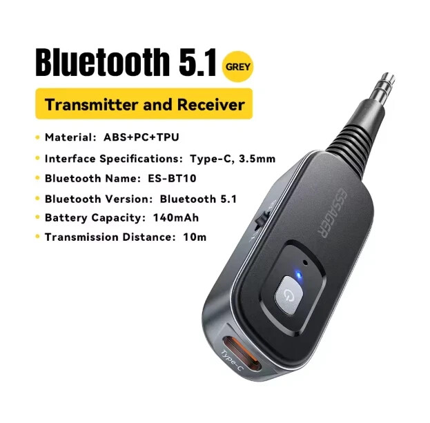 Essager 2-in-1 Bluetooth Audio Receiver Transmitter Wireless Bluetooth 5.1 3.5mm Specifications Hign-concerned Chemical None Model Number ES-BT10 Package Yes High Definition Support None Content AUDIO WIFI Standard None Wireless Type bluetooth Interface 3.5mm Brand Name ESSAGER Origin Mainland China Description Report Item