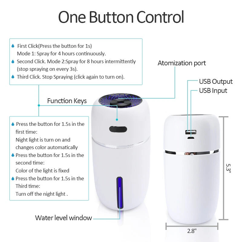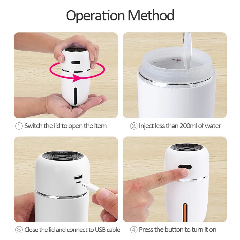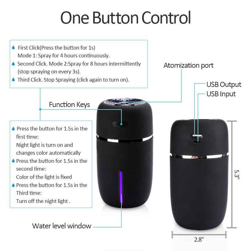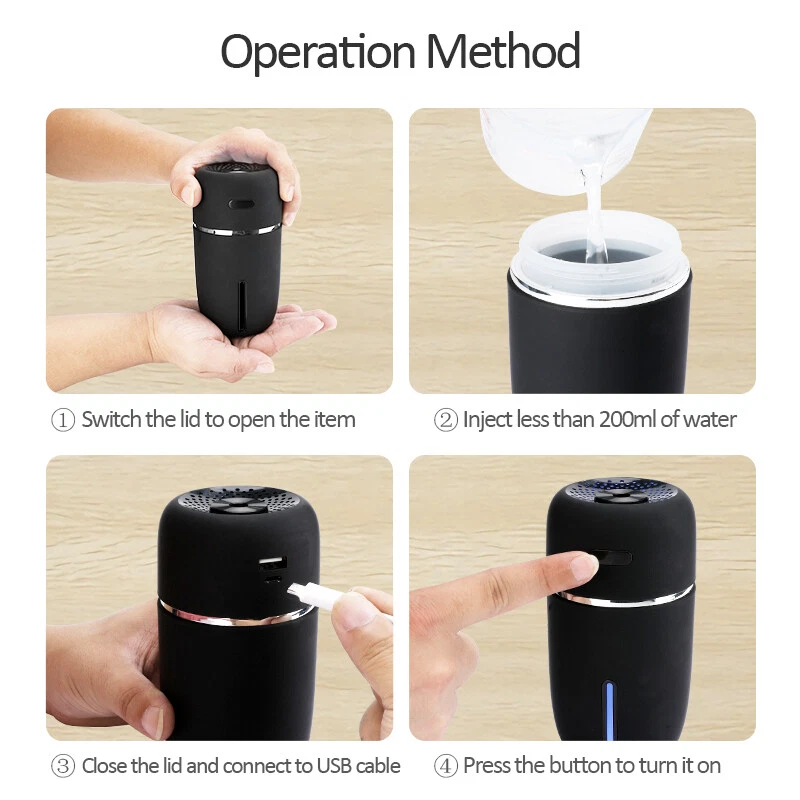 200ml Essential Oil Diffuser Humidifier Air Aromatherapy 7 LED Ultrasonic Aroma 200ml Essential Oil Diffuser Humidifier Air Aromatherapy 7LED Ultrasonic Aroma 100% Brand New & Excellent Quality FREE & FAST SHIPPING FROM NJ, US 2 Mist Mode This mini USB humidifier has two modes. First mode, you need to press once and it will continuously spray for 4.5 hours. Second mode, you need to press again and it will intervally spray (stop 3 seconds) for 9 hours. Quiet & 7 Soothing LED Light Small cool mist humidifier is super quiet with low noise, soft night light making it perfect for sleeping. Press the button for 1.5 seconds, the light will automatically change. Press again for 1.5 seconds, the light will turn solid. Safe Protection and Auto-off This desk portable humidifier holds 200ml of water and can last about 4-9 hours. A water level window helps you check the water capacity. Once the water runs out, it will be auto shut-off to protect the device. Features: * 2 Modes: Fisrt Mode-Continuously spray for 4.5h by pressing once; Second Mode-Intervally (Stop 3 seconds)spray for 9h by pressing again. * Quiet & 7 Soothing LED Colors:Super quiet and soft night light make it very comfortable sleep. *Safe protection and Auto-off:Stop spraying automatically when on the timing of time;A water level window helps you check the capacity of water,if water out of the max capacity,it will be shut off automatically to protect the device. * The use of the mini humidifier can effectively reduce the drying,reduce the electronic radiation to eliminate the static electricity,safe and clean,very suitable for indoor and car use,as well as beauty salon,SPA,conference room,yoga,hotel,hospital. * Modern design and made of durable materials,with amazing colorful lights,an ideal gift for your family and friends. * With lamp function. * Very portable and convenient to carry. * With the filter inside of the top cover,you can replace it if needed. Steps of Use: 1.Turn counterclockwise and unscrew cap of bottle 2.Add approprate amount water 3.Turn clockwise and tighten the top cover 4.Plug in the power click the function key the humidifier work First time ,press the function key for 1.5s to turn on the night light mode,7 colors lights will change automatically; Then press and hold for 1.5s,the light is fixed. Press again and hold for 1.5s,to turn off the night light mode. Note: 1.Do not use with essential oil in case of any atomizing film blocked. 2.Clean the item with a soft cloth instead of rinsing with faucet. Specifications: * Materials: ABS+PP+Silicone+Electric Parts * Working Voltage:DC 5V * Working Current:500mA * Power Usage:2.5W * Capacity:200ML * Spray Output:30mL/H * Timing:4.5H of First Mode / 9H of Second Mode * Item Color:White/Black * Item Size:133.5*72*72mm / 5.25*2.83*2.83inch * USB Cable Length: Appro. 1m Package includes: 1 x Humidifier 1 x USB Cable 1 x User Manual Payment Shipment Return Feedback Contact us Payment * We Accept Payment via PAYPAL ONLY . * Payment Must be Made within 4 Days of Auction Closing. * Non-Payment may Result in a UPI (Unpaid Item) being Put on Your Account. eBay will Automatically Close Your Account if You Accumulate 4 UPI's total. * Please List Your Special Requests ( Color, Size, Packages, etc. ) in the PAYPAL NOTES SECTION when you make payment. Shipment * Shipping will be handled in 24 business hours after payment got. Ship to PayPal Address only , please confirm it before paying. * Please leave your phone number in the address in case there is an address problem. Return * Returns and Exchange accepted within 60 Days. * Refund will be given as Money Back. * Free Return shipping. * Before you return the defective item,please email us for the RMA, and we will reply you in 24 hours in working days. If you do not get reply please check if your mail box has refused our reply or not, then send to us again, thanks! Feedback If you are satisfied with the transaction please remember to leave us a positive feedback (5-Star) will be much appreciated. Please DO remember to contact us before leaving the neutral, negative feedback or opening a case/dispute if any problem caused by the item . Normally your email would get replied within 24 hours and your issue would be followed up carefully until we've reached a consensus! We are not only selling good items, but also selling with excellent after-sale service and a strong sense of responsibility. We will always try our best to find you a satisfactory solution if any problem takes place! Contact us Email muchbuy-outlet at Paypal registered email or ebay message.