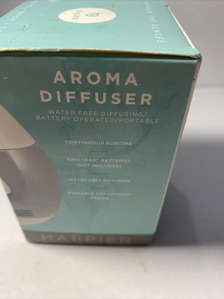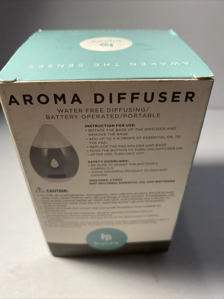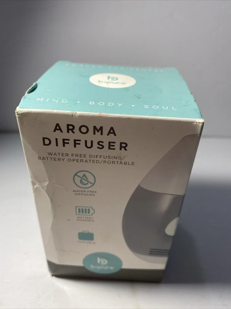 Enhance your home's atmosphere with the B Pure Essential Oil Diffuser. This modern diffuser is perfect for everyday use and portable for use anywhere. It operates on battery power and does not require water, providing a hassle-free aromatherapy experience. The B Pure Essential Oil Diffuser is made of high-quality plastic and has a white and gray color scheme. It measures 3 inches in length, 4 inches in height, and 3 inches in width. This diffuser can hold 4-6 drops of oil per use and is compatible with any scent of your choice. It is designed for adult use and can be used for aromatherapy purposes.