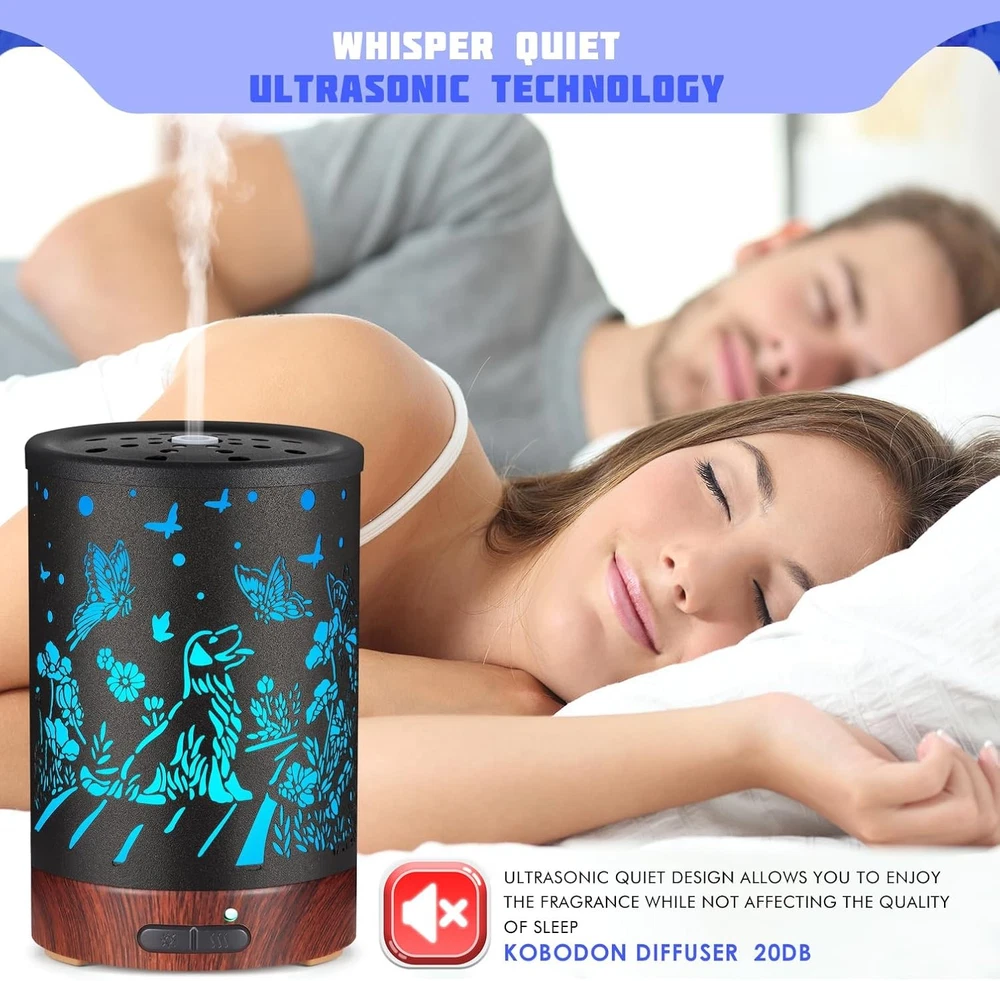 Essential Oil Diffuser Metal Cool Mist | Aromatherapy Humidifier 7 Color Lights Brand Kobodon Features 【Quality Assurance】Aroma Humidifier & Aromatherapy Essential Oil Difusser pass all the safety and durable test and get the ETL and FCC certification. 【Safety Design & Auto Shut Off 】 Aromatherapy Essential Oil Diffuser will automatically stop working and keep your unit from being damaged as soon as its water content has been used up.Easy to set up and all the functions are simple to operate, even a child could figure it out.the aroma oil diffuser’s cover can be effortlessly removed, easy to fill with water and a few drops of essential oil, helping you readily reap aromatherapy benefits. 【Whisper Quiet Ultrasonic Technology】 The ultrasonic aroma humidifier & oil diffuser adopted advanced ultrasonic technology, it is extremely quiet without annoying noise that won't disturb you when you sleep or at work.This diffusers for essential oils large room fills the space with a lovely fragrance that can uplift spirits and relieve stress from stressful and tired day, perfect for burying stubborn smoking and pet odors, help to get peaceful sleep surrounded by the aromatic fragrance. 【Attractive Design 】The air diffuser for essential oils has 7 color led lights, each color has bright and dim, or turn off all lights for total darkness. Working time: 6 hours in continuous mode.You can choose your prefered color mode to meet your different needs.And It's also a great dragonfly diffuser gifts for women 【Multifunctional Design】Kobodon Aromatherapy essential oil difusser cool mist humidifier night light. Also a beautiful room decor. Continuous cool mist and savor the pleasing scents to give your home a fresh, fragrant scent, gently humidify the air , relieve stress, and revel in deep relaxation. Great ideal for home, office desk, bedroom nightstand, yoga studios,spa,office. Our Business 100% Customer Satisfaction We go above and beyond to ensure you receive the best level of service. Returns We want you to be happy with your purchase, however in the rare occasion that you are not, please let us know and we will contact you to arrange either a collection or a refund. Please CONTACT US before leaving any negative feedback and we will promptly sort out any issue with your order. 7789846