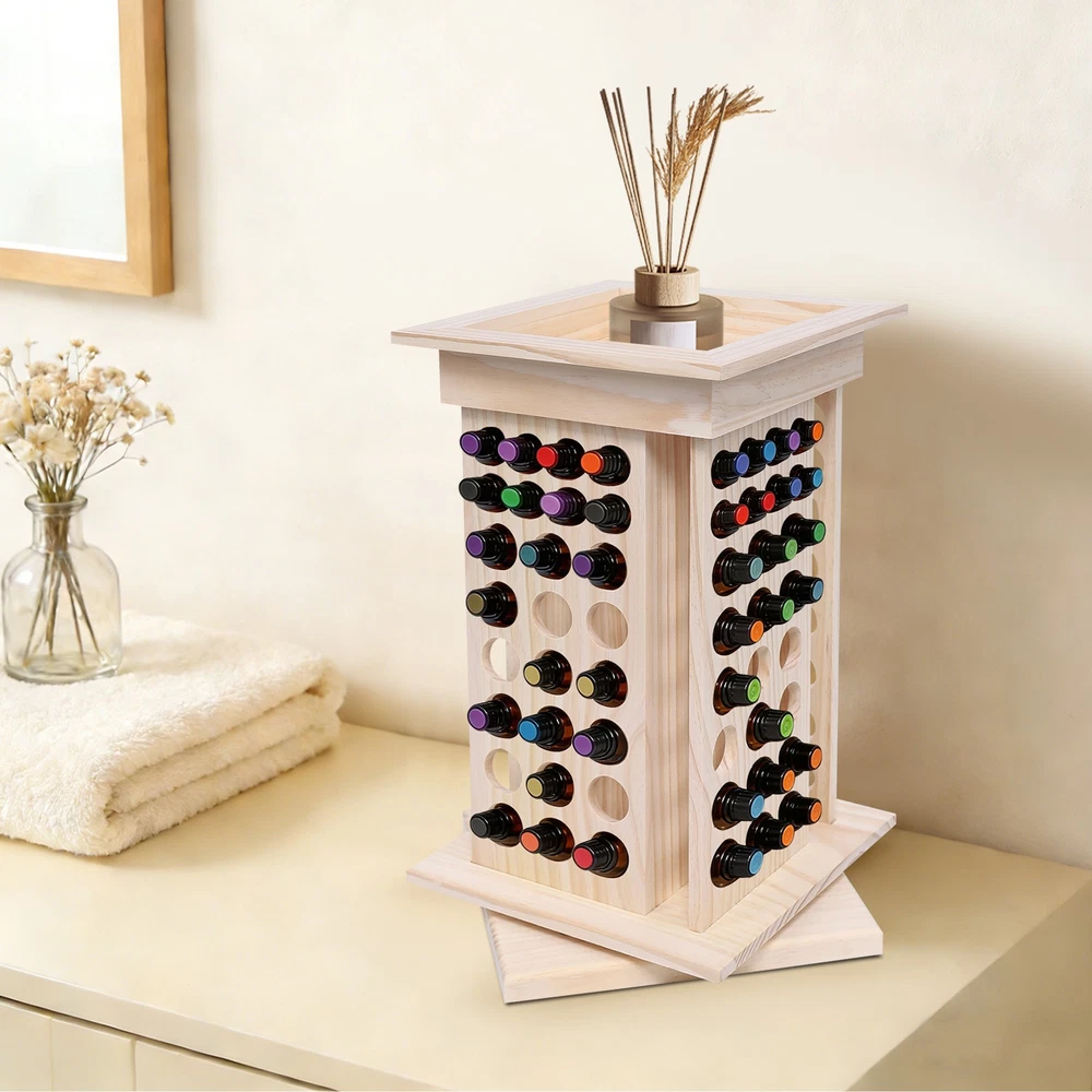 Essential Oil Holder Display 8 Tier Wooden Rotating Storage Display Stand USA