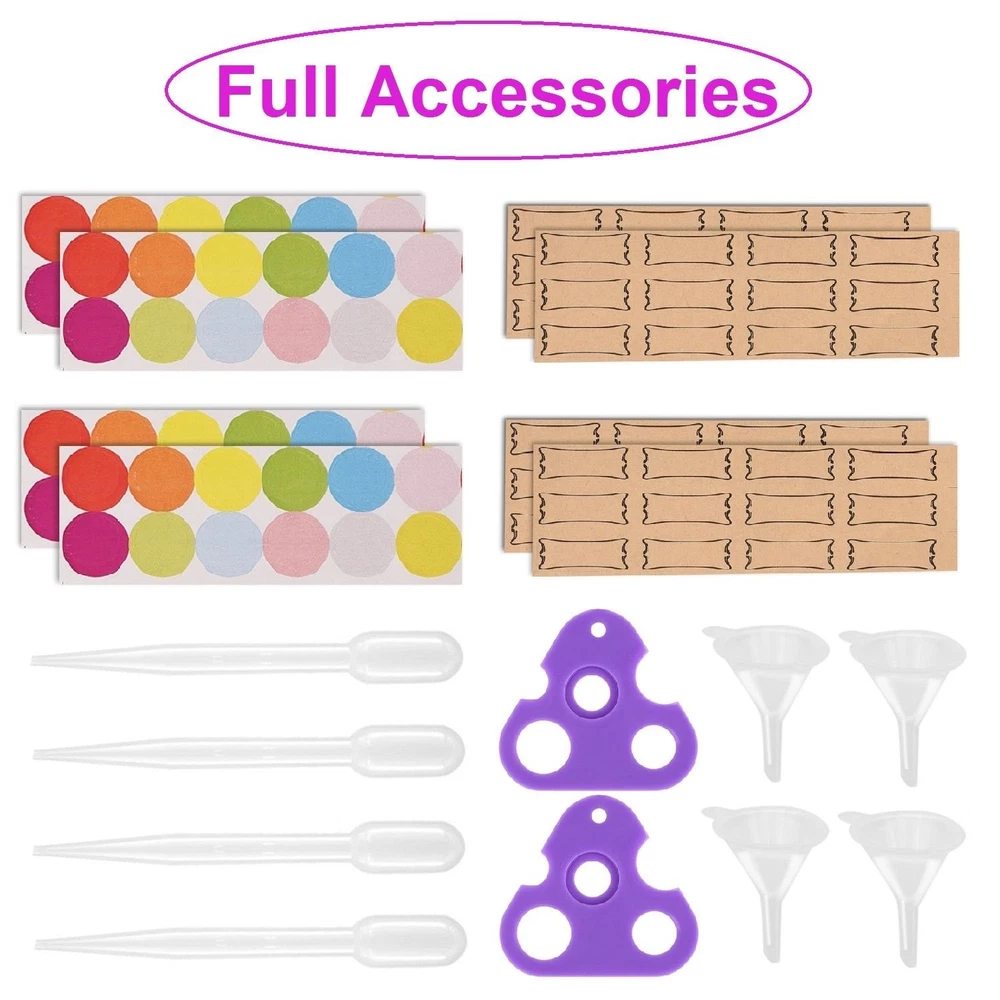 Essential Oil Roller Bottles, 24 Pack Amber Glass Balls Roller Bottles 5ml for Essential Oils, Roll on Bottle 96 Pieces Labels, 4 Funnels, 4 Dropper, 2 Opener Quality: The essential oil roller bottles are made of corrosion-resistant glass featuring thickness, smoothness and anti-shock and prevents essential oil from harmful UV rays to save it from quick volatilization. Portability and Prevent Leakage: Comes with a pack of 24, 5ml roller balls for essential oils. The capacity allows you to store synthesis oil, natural essential oil, essence, perfume or other liquids of your needs for daily eyes care, faces and body. The packaging is perfect for traveling and it easily fits in your purse. The screw thread finish roller bottles for oils mouth is matched with a cap, which fits tightly and can effectively prevent any liquid leakage. Stainless Steel Roller Balls: The well-made roller balls for essential oils are made of Stainless steel, which is corrosion resistant. The tightness can prevent any sort of leakage. With our essential oil opener, the battle can easily be disassembled and filled. A Must Have Tool: 4 Funnels include the glass roller bottles are provided to fill essential oil easily. You will also get 96 roller bottle labels to mark and classify essential oils for spare to do the . With our oil roll on bottle for essential oils, you can enjoy every moment during massage or beauty salons, and design your essential oil formulations with these adorable bottles to help you to relax during salon or aromatherapy. Ideal Choice: Any problems for essential oil roller bottles, we will provide you proper solutions. We are confident you will love our amber glass roller on bottles.