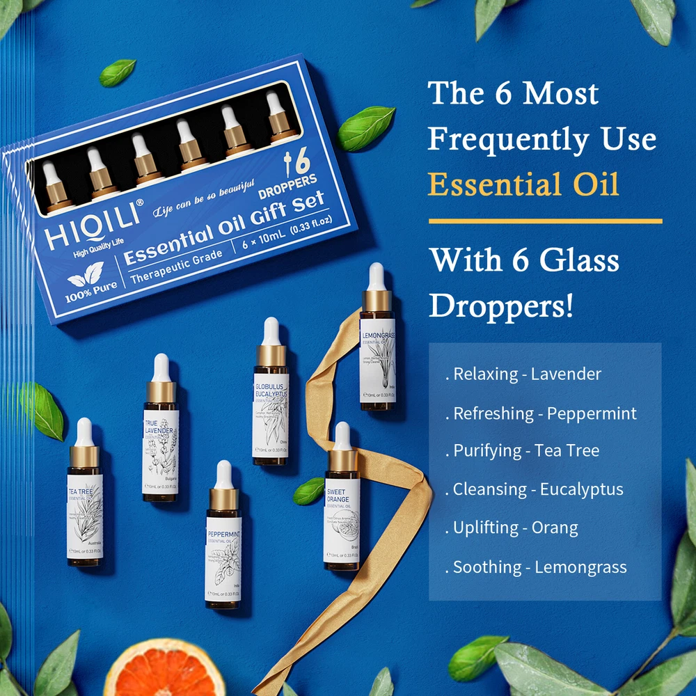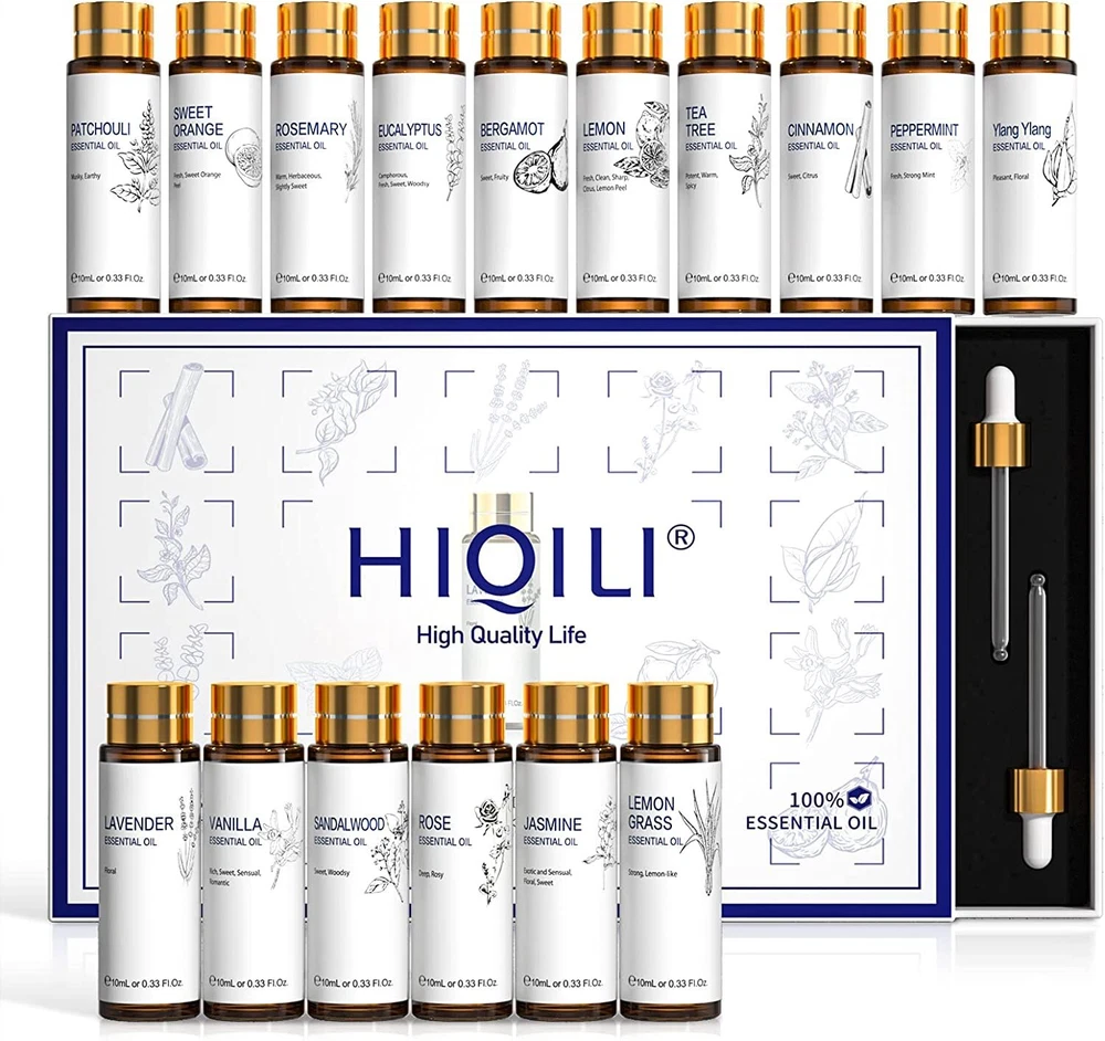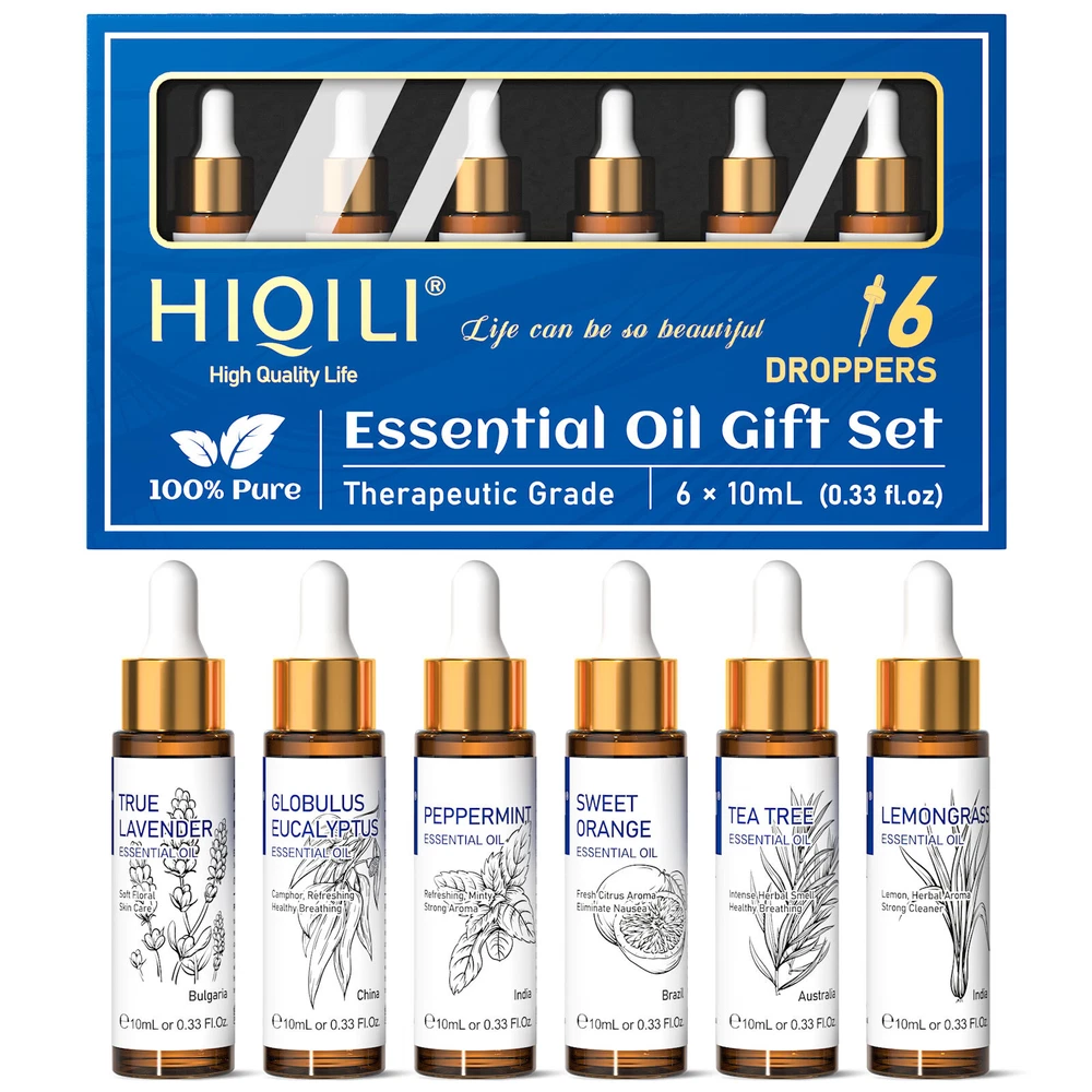 Manufacturer Warranty: 3 Years For: Aromatherapy Container Type: Amber Glass Bottle, Exquisite box Features: Diffuser Labels & Certifications: 100% Concentrated Model: Essential Oil Set Brand: HIQILI Material: Plant Type: Essential Oil Product Line: HIQILI Essential Oil Set/Fragrance Oil Kit Effect: Stress Relief Number in Pack: 6 Country/Region of Manufacture: China Scent: Premium Fragrance Oil Department: Unisex Volume: 10 ml Color: Brown Installation Area: Indoor/Outdoor