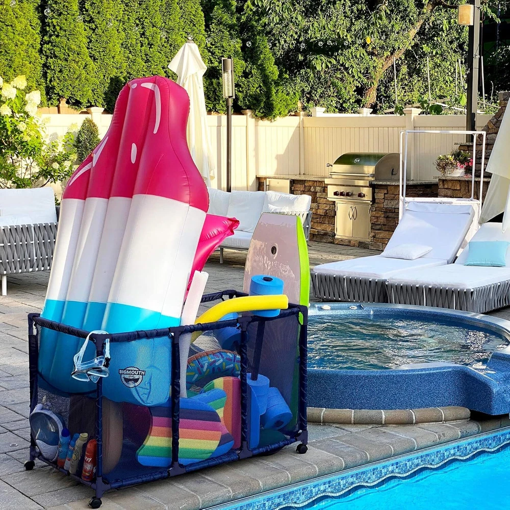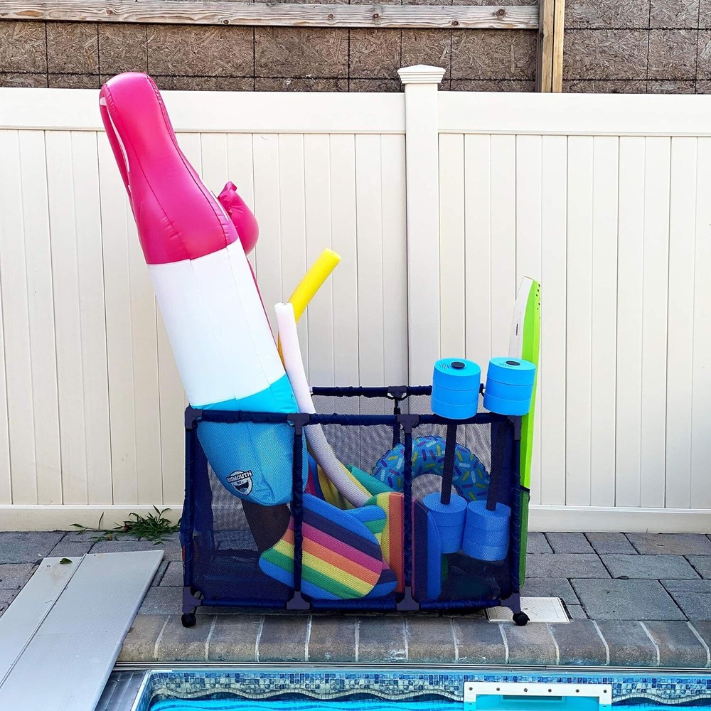 This mesh storage bin is a game-changer for pool toy organization! The sturdy PVC frame and tough mesh hold noodles, floats, and balls without trapping water. Kids love how easy it is to grab their toys, and I love how neatly everything stays in one place. The compact height is perfect for little ones, while the wide design fits all our pool gear. No more tripping over scattered toys—just toss them in and roll the bin away! Super convenient and built to last through seasons of fun.